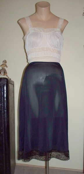 У моей мамы (1927 г.р.) была ТРОФЕЙНАЯ немецкая комбинация. Там была богато украшенная кружевами грудь. Кружева классически шли уголком и подобное же кружево по низу. Но самое главное там были ТАЛЕВЫЕ ВЫТАЧКИ!!! спереди и сзади примерно 2-3 см раствора и при этом очень коротенькие, примерно сантиметров по 8-10 в обе стороны от талии. За счёт, видимо, больших припусков на свободу облегания к обхватам по груди и по бёдрам получалось ТАКОЕ СЕКСИ..... Сшита она была из вискозного трикотажа. Рассказываю так подробно потому, что к тому времени, когда она перешла от мамы ко мне, она начала потихоньку уже расползаться от старости (конец 60-х) и я пыталась её повторить. Но... то ли умения ещё не хватило, то ли материалов таких не было...