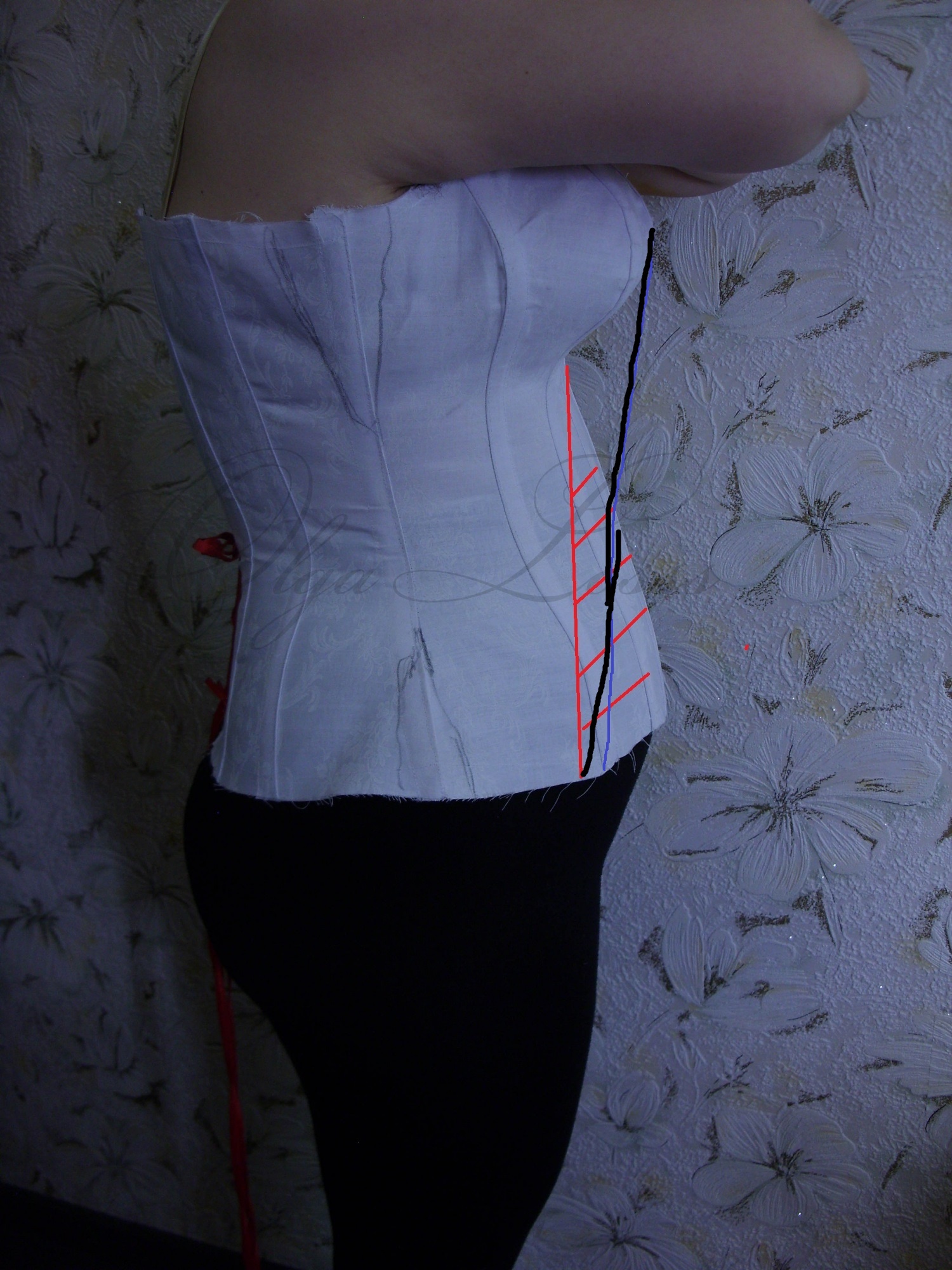 Марго, нет, это моя нормальная обычная осанка. Если я выпрямлюсь, тоесть отведу назад плечи и опущу их, а еще встану на каблуки, то спинка прогибается еще больше и оттопыривается попа. И да, живот идет вперед. Ну вот так получается ;-). А сейчас у меня есть неприятные ощущения в пояснице (позвоночнике), т.к. такое ощущение, что корсет как раз не дает мне выпрямиться.