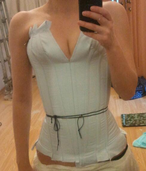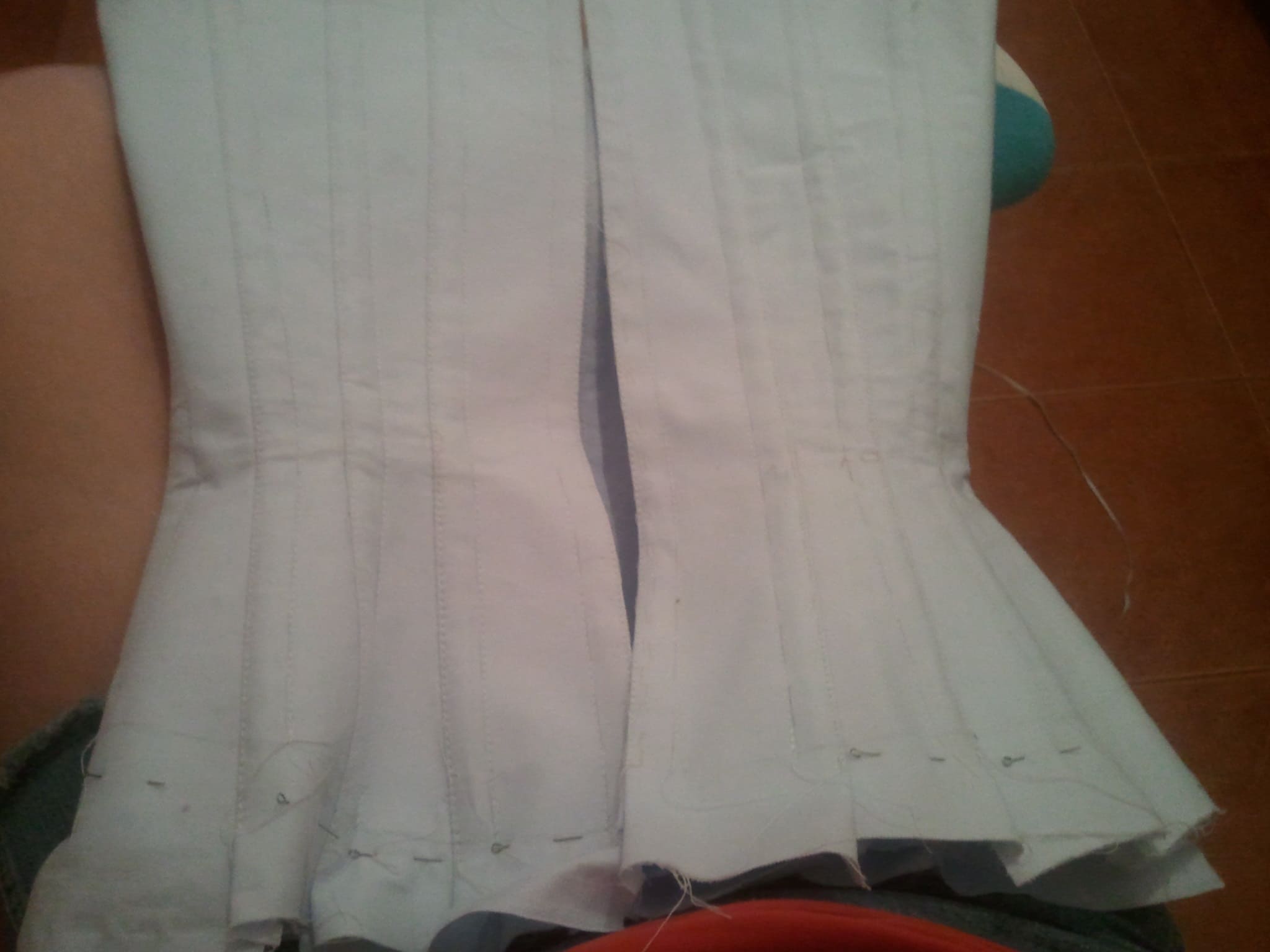 А если не спрямить, то это не исправить. Придется спрямить. Можно не до самой талии. А можно и до самой. Зазор между краями в месте шнуровки позволит вам утянуть лишнее, если что. И , я конечно не знаю как на Ваш вкус, а на мой такая резкая перетяжка в талии смотрится не очень гармонично. Это уже даже не тюльпанчик, а первая попытка начинающего стеклодува изготовить вазочку. Простите за сравнение, но такое уж у меня образное мышление. Само подсовывает образы.