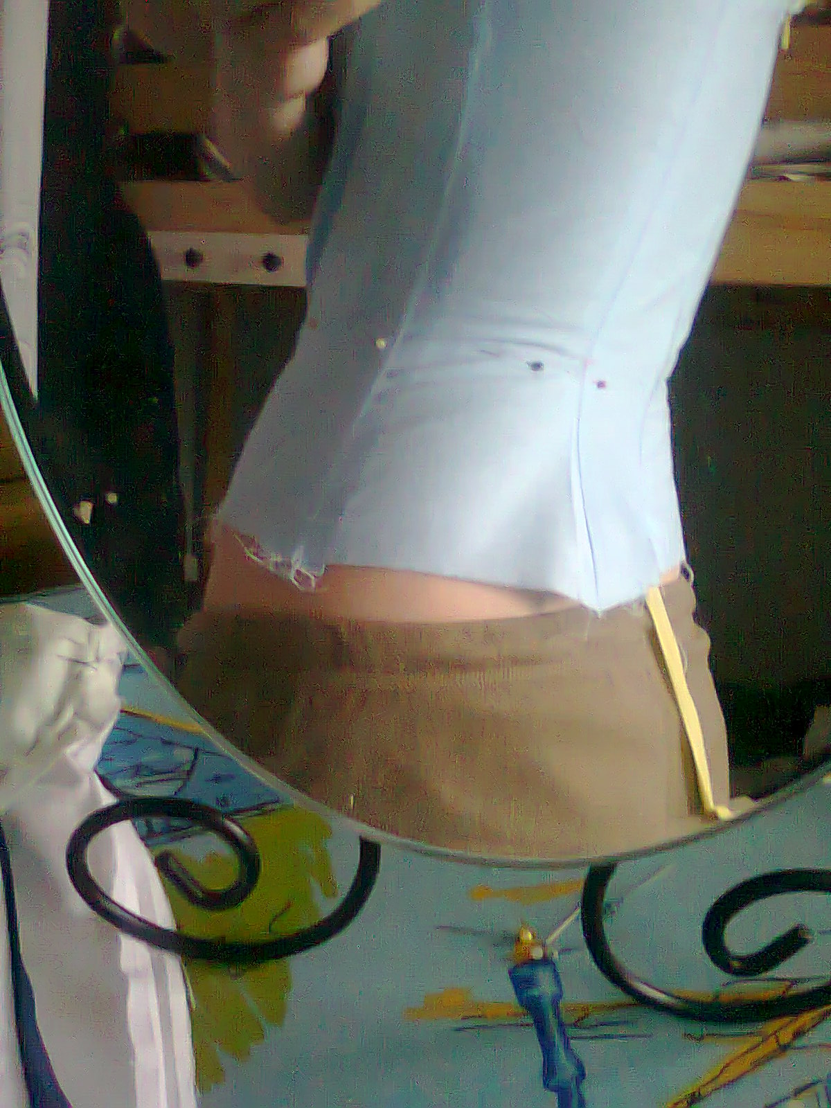 Katererinaleksa.,извините, но немного не поняла,про выворотный способ ( Я соединила два слоя по середине переда ,а затем вывернула, а после необработаные края сверху и снизу окантовала бейкой.Снизу не чувствую,что впиваеться. Может так кажеться,потому что кости выгнуты к телу и верх тоже.А если там делать свободно ,не будет выпирать живот?Я же наоборот, хочу подтянуть его,приплюснуть. (После детей -богатырей ( по 4 500 кг. )трудно избавиться:-))Да и талия по тоньше не помешает ))