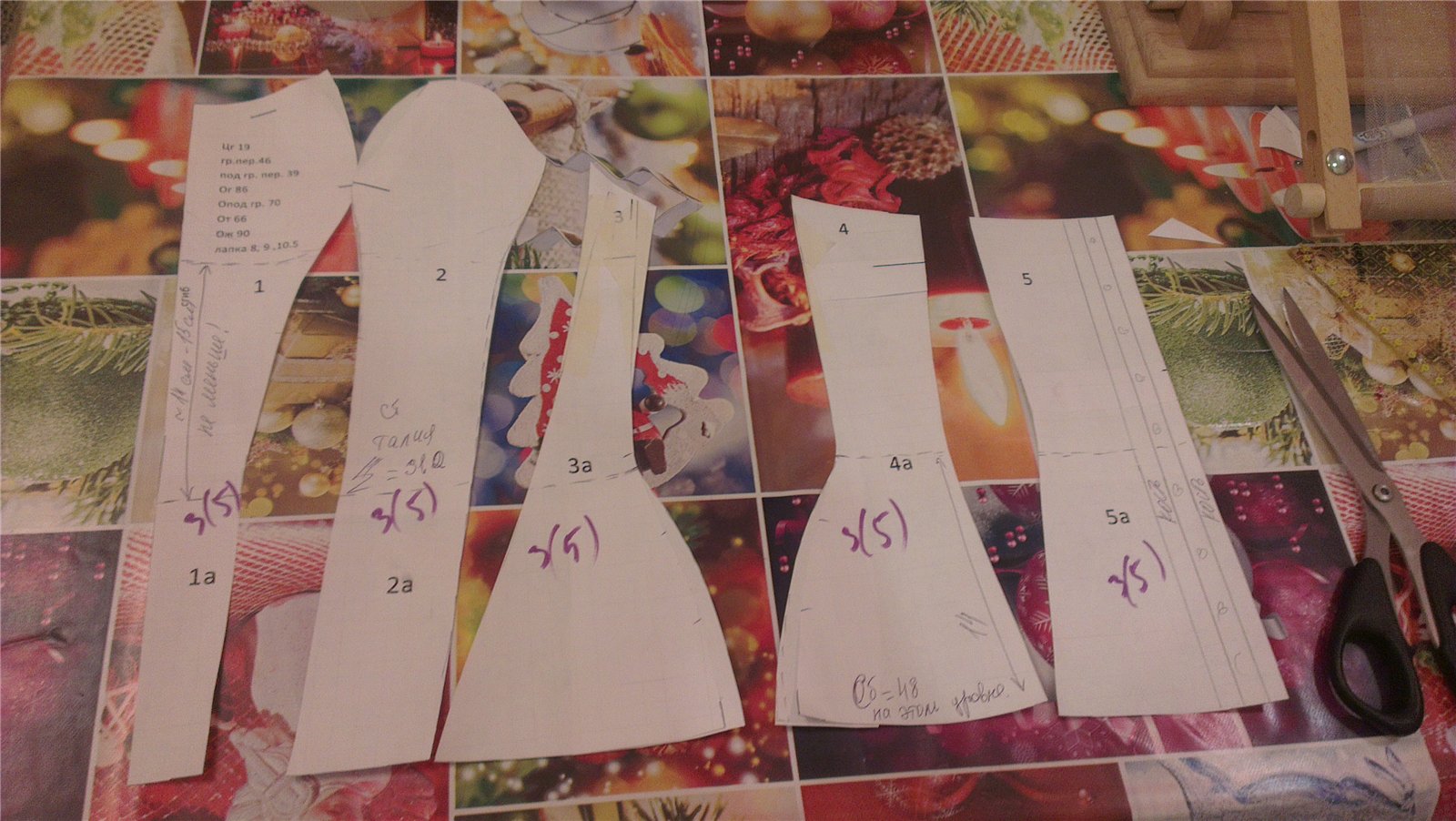По поводу длины верхнего среза- нет полной уверенности, верхний срез у меня всегда правится на примерке. вытачка по верхнему срезу между первой и второй деталью может быть поменьше или побольше, или также может быть больше или меньше вытачка между второй и третьей деталью, а может быть и расщирение верхнего среза между деталями 2 и 3 ,все зависит от формы и , простите, мясистости