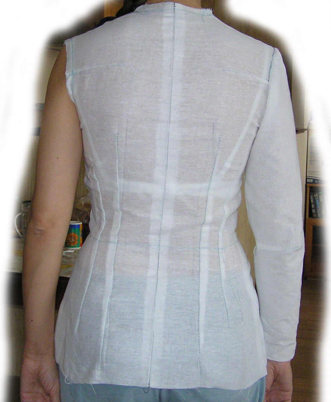Jizelia, вы правы. Вот сделала рукав для следующей основы, и при втачивании в пройму по переду рукав легче втачать, а по спинке сложнее. У рукава сзади больше прибавка. Есть небольшая складочка, но это из-за спешки и отсутсвия удобств на даче.