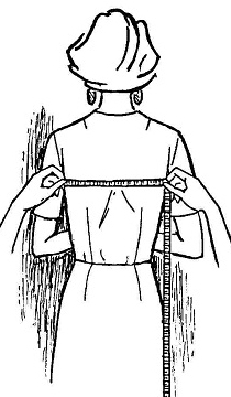 При опущенных руках на одежде образуются с двух сторон выраженные складки, которые и обозначат границу между руками и спиной. При снятии мерки ширины спины, измерение производится строго горизонтально, туго натянутой лентой от складки до складки, приблизительно на уровне линии обхвата груди, по наиболее выступающим нижним точкам лопаток.
