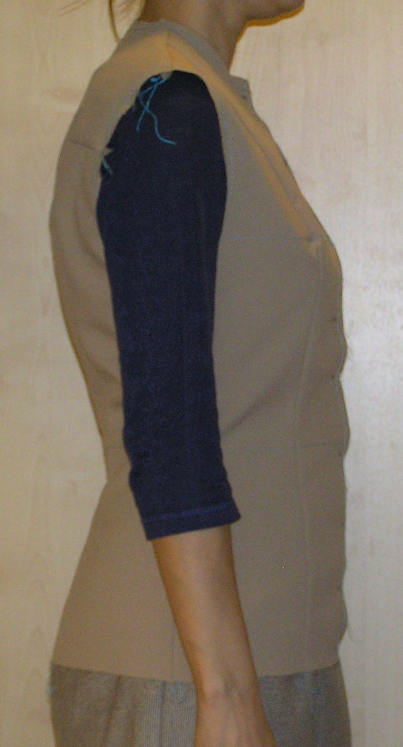 Я все таки попробовала скорректировать последний пробник. Чуть проявилась талия. Но спинка все равно не получилась, нужно отстаривать заново.