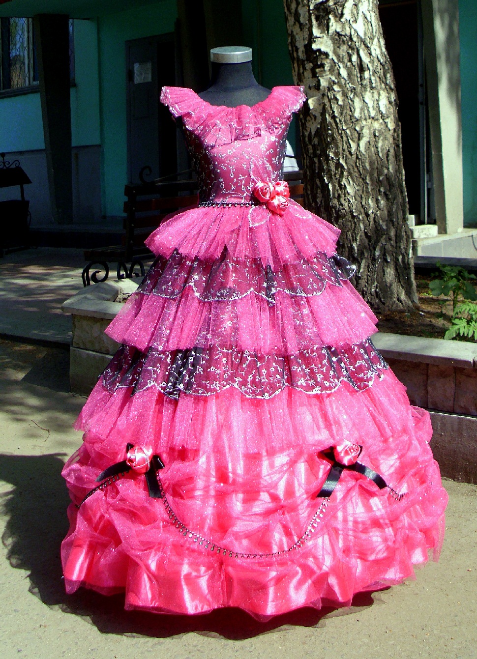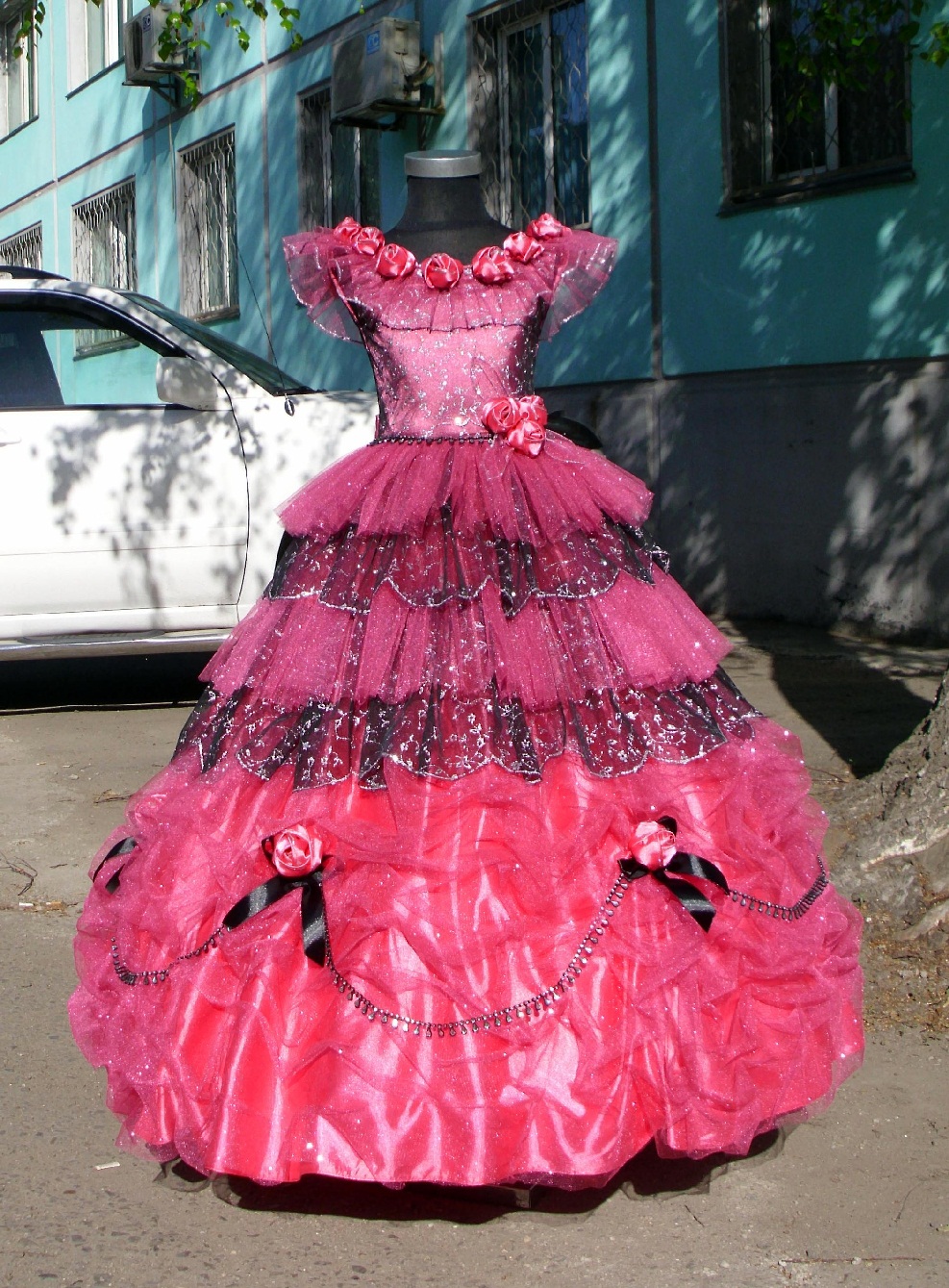 Руслана ал Опубликовано 2 мая, 2012 Автор Поделиться #102 Опубликовано 2 мая, 2012 Еще одно конкурсное платье , в стиле " эмо".)))) Розовое с черным. Фатин, атлас+ черная сетка с рисунком.На кринолине.В комплекте еще перчатки и ободок с цветами. карнавальные костюмы "детское" Ссылка на сообщение Поделиться на другие сайты Поделиться