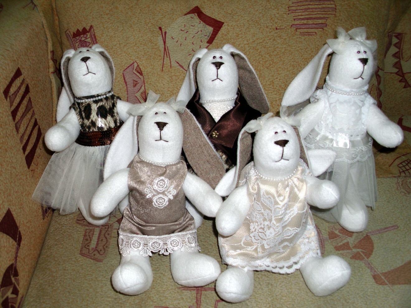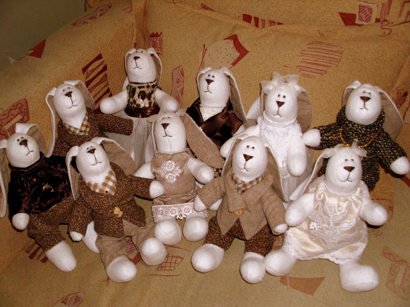 Руслана ал Опубликовано 6 мая, 2012 Автор Поделиться #115 Опубликовано 6 мая, 2012 Ой!Чуть не забыла про зайцев то написать!!!!Знаете, я вообще-то к такого плана игрушкам весьма прохладно отношусь, но ваши "зацепили" !:-) Долго их разглядывала! Получила удовольствие! Знаете, такое эстетическое удовольствие от созерцания качественно выполненной вещи от кутюр(энергетика наверное :-)))Так вроде - зайцы, просто зайцы.:-))) А не просто, видимо!!!:-))) Спасибо! Это ,кстати, не только моя работа. Выкройка моя (на основе Тильдовского зайца), шила и одевала, тоже я. А вот набивал их ,и руки-ноги приделывал, мой муж.При этом он с каждым зайцем разговаривал.) Поэтому, наверное, и энергетика появилась.))) карнавальные костюмы "детское" Ссылка на сообщение Поделиться на другие сайты Поделиться