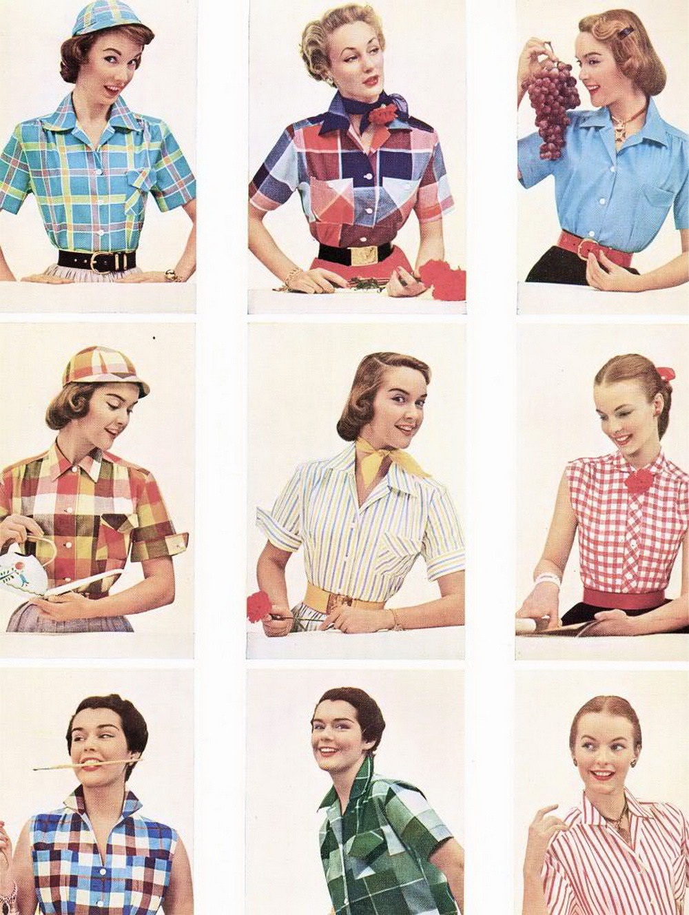 Милейшие блузки в клетку, итальянская мода, тренд сезона весна-лето 1952.