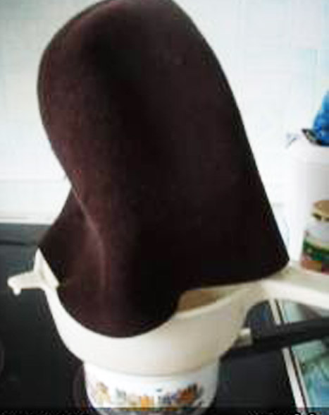 тусси Опубликовано 18 февраля, 2010 Поделиться #57 Опубликовано 18 февраля, 2010 (изменено) вот вам развлекушка - МК от меняБерем колпачок фетровыйТеперь спецклей- сальвитоза называетсяРазводим и получаем кисельТеперь промазываем колпак изнутри и трем его , чтобы клей впитался, но не промокКипятим воду и ставим колпак на пар на 4минон покрывается таким туманчиком :rolleyes: Теперь берем болванкуНа ней одет п/э пакетик и сверху старый чулок. Пакетик, чтоб краска с колпачка (случайно) не окрасила болванку и колпак не приклеился к дереву. А чулок, чтоб изнутри не было глянца.Теперь своими сильными ручками натягиваем колпак на болванку. Важно именно натянуть, а не просто одеть. Булавками заколачиваем по низу и по рельефу, проложив п/э шнур.Теперь все это хозяйство будет сохнуть где-то сутки Изменено 1 октября, 2010 пользователем Jioti Профессионализм - это отсутствие иллюзий. Ссылка на сообщение Поделиться на другие сайты Поделиться