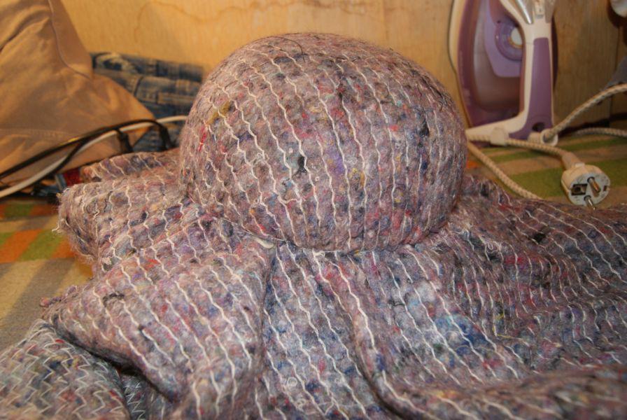 Не, не на шляпку. Я извращалась, и основу сделала из ватина. А форма фиг знает, какая там получилась. Я наколкой на болванке её сделала. Сразу всё зашила, закрепила и не распарывала, чтобы посмотреть что там. :)
