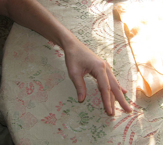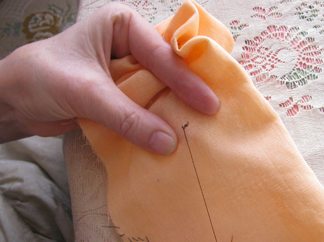 Бурлакова Фрося Опубликовано 9 марта, 2012 Поделиться #65 Опубликовано 9 марта, 2012 .А я продолжаю свою безнапёрсточную песенку:) - Шью-то я на уровне рефлекса, так что обдумывая для данной темки свою работу пальчиками, с удивлением вижу, насколько она непростая...======================================== ...Вот вам моя левая ручка. Это постановка кисти для классической хореографии. Красиво, правда?:) А вот так выглядит постановка левой руки для шитья. Забавно, мне пришло в голову, что слова "пальцы" и "пяльцы" - очень созвучны:)Вот и я делаю из своих пальчиков такие маленькие пяльцы, в которых зажимаю и натягиваю ткань. Как струбцинками, прижимаю ткань между большим и безымянным пальчиком - и между указательным и средним. Располагаю эти пары пальчиков см на 3 друг от друга - и получаю крошечные живые пяльчики с натянутой в них тканью. Мизинчик, естественно, изящно оттопыриваю!- Более того. Подушечка безымянного пальца чуть смещена снизу из-под большого пальца - и я работаю на этой подушечке, как на швейном грибке. Ткань лежит на подушечке, натянута, подпёрта, не смещается и не болтается. И я могу этой подушечкой контролировать на ощупь движение иголки с обратной стороны ткани. Теперь я возьму в эти пальчики-пяльчики ткань... Так это выглядит сверху и снизу. Если прошиваемый участок далеко от края, то насбариваю ткань левой рукой, пока не достигну желаемого места.Совсем не обязательно держать всё это на весу. Стол, коленка - да всё, что угодно, подходит.Теперь можно шить!Но об этом чуть позже. Всегда всех стройней, розовее и вышеРучное шитьё в режиме онлайн Ссылка на сообщение Поделиться на другие сайты Поделиться