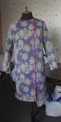 Дончанка Опубликовано 22 августа, 2014 Поделиться #50 Опубликовано 22 августа, 2014 Летнее пальто от Анжелины Джоли.http://club.season.ru/uploads/post/17842/360/post-17842-1408529360_thumb.jpg http://club.season.ru/uploads/post/17842/540/post-17842-1408530540_thumb.jpg http://club.season.ru/uploads/post/17842/646/post-17842-1408530646_thumb.jpgПо качеству плотная Х/б с элластаном, слегка жатая и с золотым рисунком поверху основного. Прямое, полуреглан, рукав длинной ни туды и ни сюды - и не 3/4 и не 7/8 - вот такой захотелось на примерке, карманы в боковых швах, все "внутренности" и швы отделаны косой бейкой синего цвета. Без воротника. Горловина чуток расширена (так задумано). По низу заложены спереди и сзади по две складки по 5 см , и застрочены на 5 см вверх. Заутюжены к центру - как то решилось одним взмахом руки на примерке , чтобы зрительно создать слегка круглую форум пальто и заужение . Кнопки декоративные золотые под рисунок на ткани. Без подплечиков, чтбы плечо было мягкой формы.Ничего лишнего.Подробности и много ракурсов + МК по обработке кармана и шва в пальто без подкладки косой бейкойhttp://club.season.ru/uploads/post/17842/815/post-17842-1408532815_thumb.jpg в Личной теме ...ни на одной клавиатуре не существует специальной кнопки "создать шедевр"...Кетрин Айсманн. Ссылка на сообщение Поделиться на другие сайты Поделиться