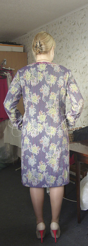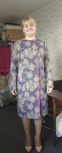 Строчка Опубликовано 8 апреля, 2014 Поделиться #42 Опубликовано 8 апреля, 2014 Летнее пальто из именного жаккарда от OlgaLosss. цитирую:У нас на Сезоне уже началась пора летних пальто и у меня тоже есть что вам показать ;-).Летнее пальто из именного жаккарда (вот тока имя я запамятовала :-))). Правда мы изнанку ткани сделали лицом :-))). Она нам больше по цвету подходила, т.к. выбирали тканюху к туфлям (они как раз на клиентке на фото). Да и лицо ткани было мало того, что песочного цвета, так еще и с жаточкой между букетами цветов. А изнанка очень напоминает гобелен и гладкая. Вообщем случилась изнанка :-))). Укрепила полочки пальтовым дублерином. Силуэт у нас полуприлегающий, почти прямой. Карманы в рельефных швах. Подкладка тоже жаккардовая, с очень красивым переливом цвета от бордового к сиреневому (хамелеон), отлетная по низу. Застежка на пластиковые кнопки, потайные. Сначала никаких отделок на пальто не планировалось, но на примерке выяснилось, что она просто необходима. А иначе все сливалось и выглядело тяжелым монолитным ковриком :-))). Так что после нескольких пробных экспериментов была выбрана декоративная отстрочка яркими малиновыми нитками (поддержка туфлей). Альбом OlgaLosss. Шитье мое. Захотела и сшила...делов-то!====================Мастерская Строчки... Мы с Котами в ИнстАграме. Ссылка на сообщение Поделиться на другие сайты Поделиться