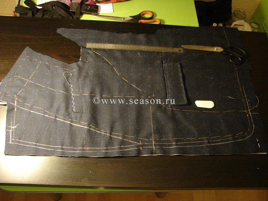 ВоЛёлик Опубликовано 2 декабря, 2014 Автор Поделиться #551 Опубликовано 2 декабря, 2014 Ну вот! Как говорится, если хочешь чего-то, то нужно все лишь попросить об этом) в моем случае задала вопрос и сама на него ответила))до и после корректировки (поворота) спинкиесли бы не оставила больших припусков, то всё! была бы мне еще одна головная боль))) поворачивала выкройку в боковой точке отметки талии. получается,что со стороны центра спинки талия приподнялась чуть больше, чем на сантиметр. В области горловины смещение получилось примерно на 3см как мне кажется, можно было бы еще немного повернуть выкройку, но уже шикарные припуски не позволяли предварительно сколола половину пиджака, дабы посмотреть что и как теперь будет выглядеть)) Результат меня порадовал)) как ни странно при раскрое меня смутила несостыковка клетки между полочкой и бочком в районе кармана, теперь этой проблемы нет, думаю что это из-за ВТО)) Вопрос возник на следующем этапе, точнее на его обдумывании, с карманом идущим по талии все ясно - сшиваем 2 детали, а потом шьем карман. А вот карман на груди с листочкой?? понятное дело, что я его шью до того как бортовка окажется на своем законном месте, а в бортовке надо ли делать какие-то отверстия или вырезы, назовите как хотите?? и, если надо, то прикрывать это дело надо будет так же как на кармане на талии? Наряды необходимы счастью женщины, как цветы весне))малышовая тема, основная темамой магазин на ЯМ, Группа нашей мастерской ВК, мы на FB Ссылка на сообщение Поделиться на другие сайты Поделиться