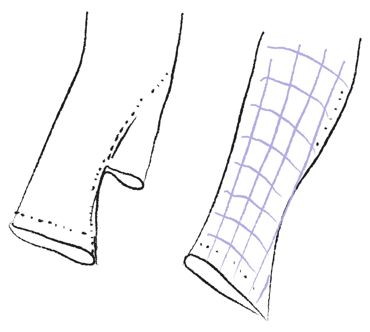 Кроме того, если в шве (например, боковом) одна сторона расклёшена больше, чем другая - то эта фалда будет неравномерной, будет западать на сторону с меньшим клешением.