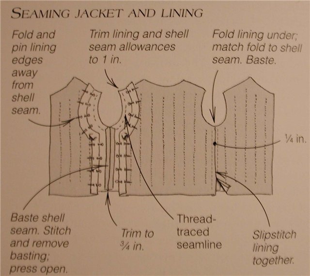 2.когда стачивали изделие (кроме плечевых),стачивали подкладку и фасонными стежками соединяли между собой эти слои.