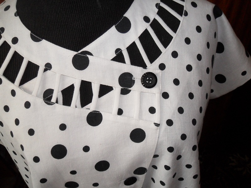 Ланруж Опубликовано 17 августа, 2012 Автор Поделиться #67 Опубликовано 17 августа, 2012 И ещё несколько снимков, Посовещавшись с клиенткой,решили обойтись без комбинирования.И на наше счастье в магазине нашлась очень-очень близкая и по цвету и по фактуре вискоза.Вот её я и использовала для подборта и обтачек.А весь горошковый остаток ушёл непосредственно на блузу. Ссылка на сообщение Поделиться на другие сайты Поделиться