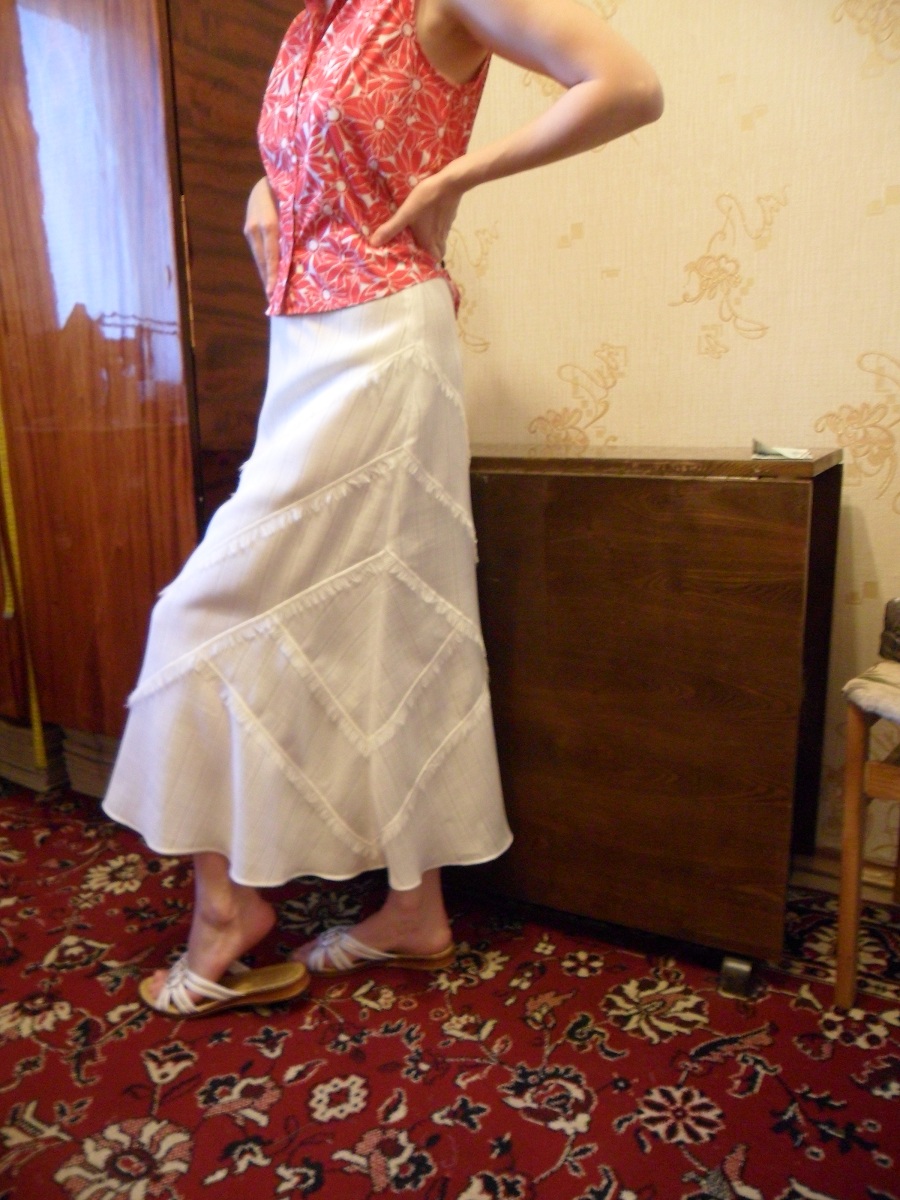 Ланруж Опубликовано 13 августа, 2012 Автор Поделиться #62 Опубликовано 13 августа, 2012 На выкройке невозможно было увидеть эту разницу.Юбка состоит из двух деталей:верхняя часть юбки и нижний волан.Но сами видите какая ломанная линия пришива.И уловить взглядом разность длин и не догадаешься.Тока на примерке. Ссылка на сообщение Поделиться на другие сайты Поделиться