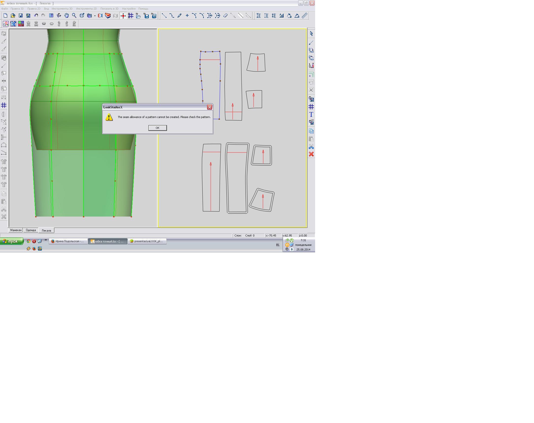 ollya Опубликовано 28 августа, 2014 Поделиться #2095 Опубликовано 28 августа, 2014 В каком то из лекал есть нестыковка линий. Бывает что такое лекало подсвечивается при нажатии кнопки ок в сообщении. если не выделится- то придется пересмотреть все- особенно углы лекал.Я делаю так- нажимаю кнопку- соединить линии.Если линии подходят к друг другу вплотную- они соединятся с образованием радиуса в углу( потом надо или отменить операцию или выполнить команду-разбить лекала). Если есть небольшой зазор- операция объединения невозможна.Надо поработать с этим углом. Ссылка на сообщение Поделиться на другие сайты Поделиться