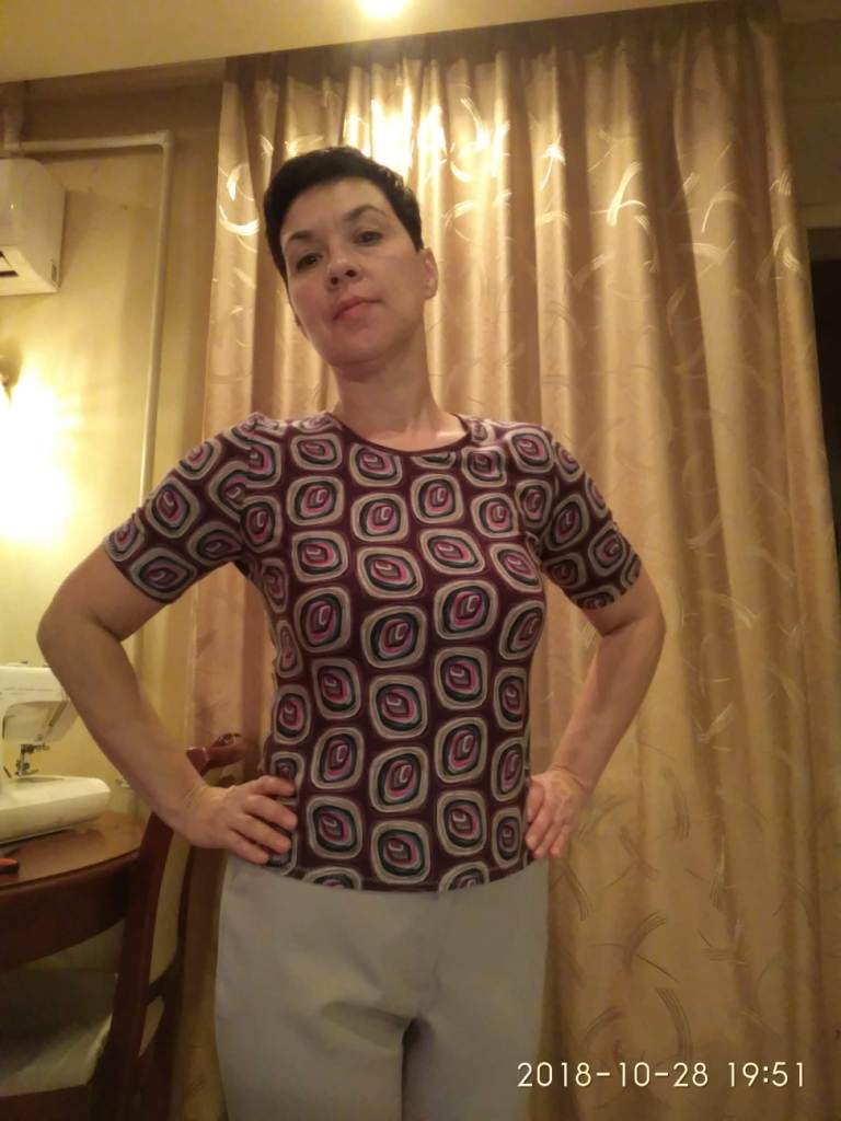 Elenko Опубликовано 29 октября, 2018 Автор Поделиться #309 Опубликовано 29 октября, 2018 (изменено) А я тихонько шью, сидя в кустиках...Простенькая трикотажная футболочка, из тех, что нужны всегда и везде...Отличное лекало, буду по нему еще ваять. быстро и экономично. Эту сшила за три часа, специально засекла время.И проблемные брюки...Все было хорошо, но столкнулась с проблемой.Сильная слабина впереди. Что сделала. Убрала ширину передних половинок почти на 3 см, Чтобы не тянуло, чуть увеличила длину задних по линии попы (не помню, как правильно назвать эту линию).Слабина ушла, но не совсем. Надо сшить пробник, попробовать внести корректировки.В общем, критика приветствуется. Советы особенно!Со спины тоже не идеал, но устраивает. Ткань стрейчевый креп полувискоза.Пытаюсь как то реанимировать гардероб, на фото незаметно, но я в последнее время немного расползлась в ширину.И многие вещи просто не налезают, а если налезают, то неприлично обтягивают... Изменено 29 октября, 2018 пользователем Elenko -= мой домик =- Ссылка на сообщение Поделиться на другие сайты Поделиться