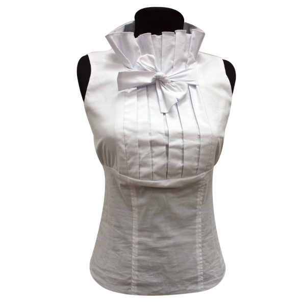 Привлекла внимание черная блузочка с воротником стойкой - а сзади там застежки нет - на бантик завязывается спереди?