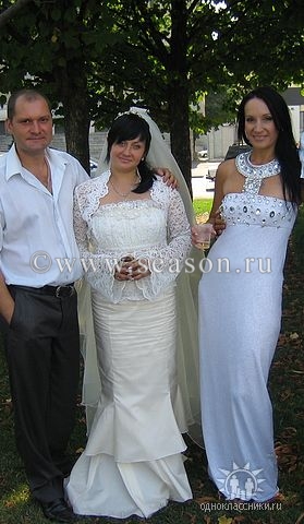 Вот еще свадебное 2-х летней давности. другой фотки нет, и ту в одноклассниках передрала)) Платье шили за неделю включая её звонок, покупку ткани и поездку в салон, в котором она его присмотрела. post-33003-1345970280_thumb.jpg