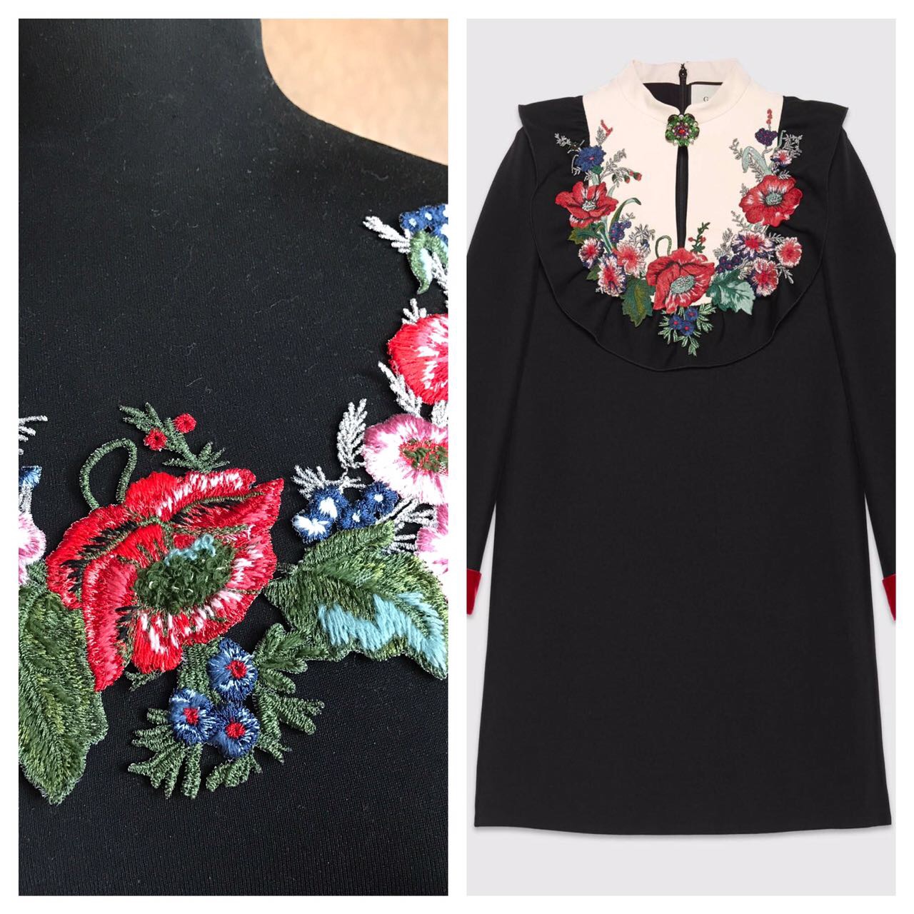 Swetulekk Опубликовано 8 октября, 2017 Автор Поделиться #4527 Опубликовано 8 октября, 2017 У меня родилась машинная вышивка по мотивам Gucci. Сначала я ее вышила на машинке, а затем для объемности прошлась ещё ручными стежками шерстяными мулене. Платье на фото, это как раз прототип , ещё пока не мое произведение) Мой инстаграм Ссылка на сообщение Поделиться на другие сайты Поделиться