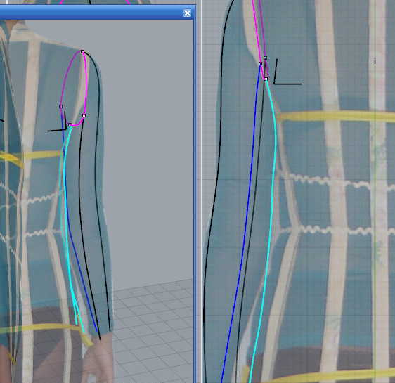 Предложу Вам более легкий вариант построения проймы в пространстве. Для этого нужен готовый манекен и 4 контрольные точки проймы (плечевая точка,