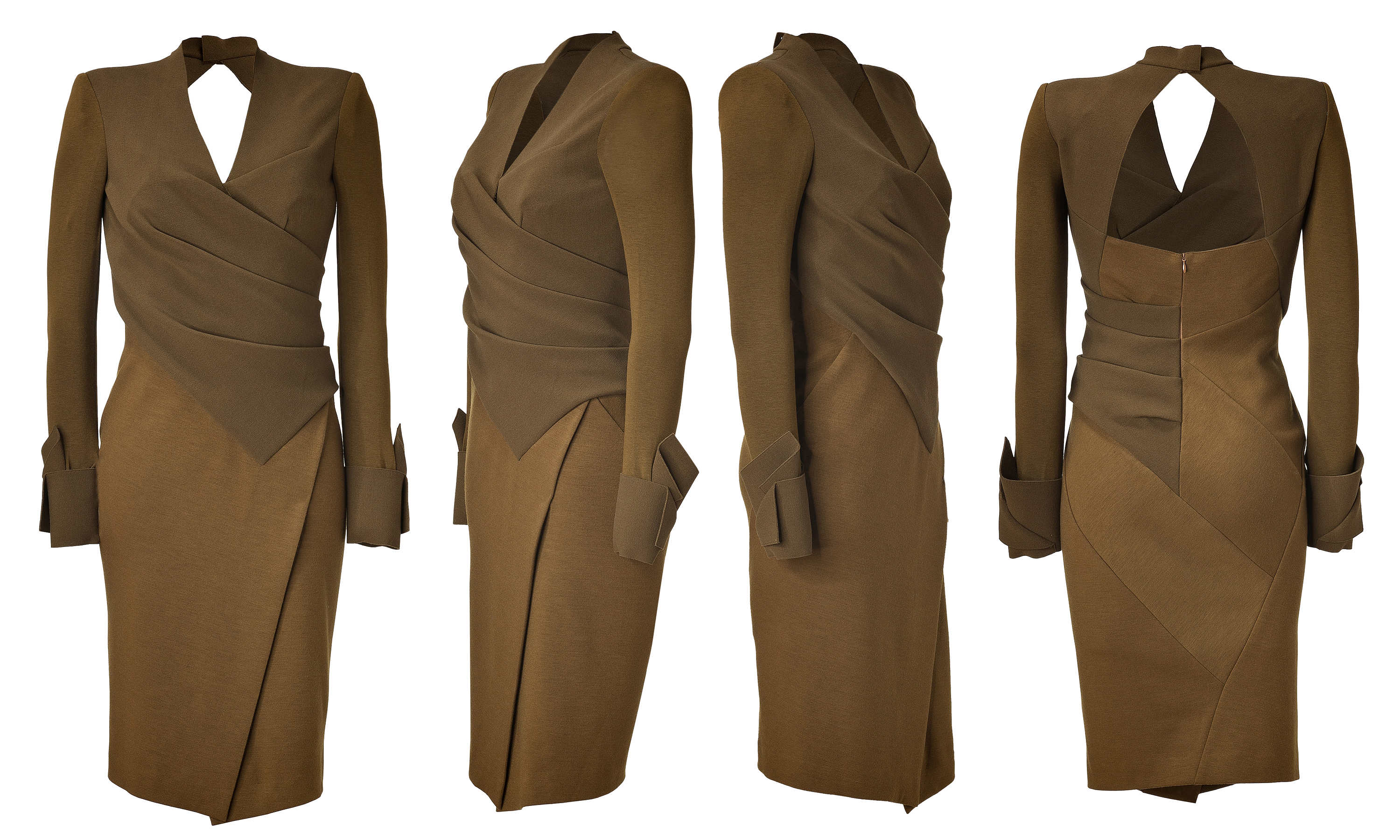 Не сочтите за навязывание, но, прочитав о рабочем варианте, мне вспомнилось одно платье Кадрен. Там не драпировка, но интересный эффект, который может поразить всех на Вас смотрящих ( в ателье входящих), и платье смотрится весьма лаконично...
