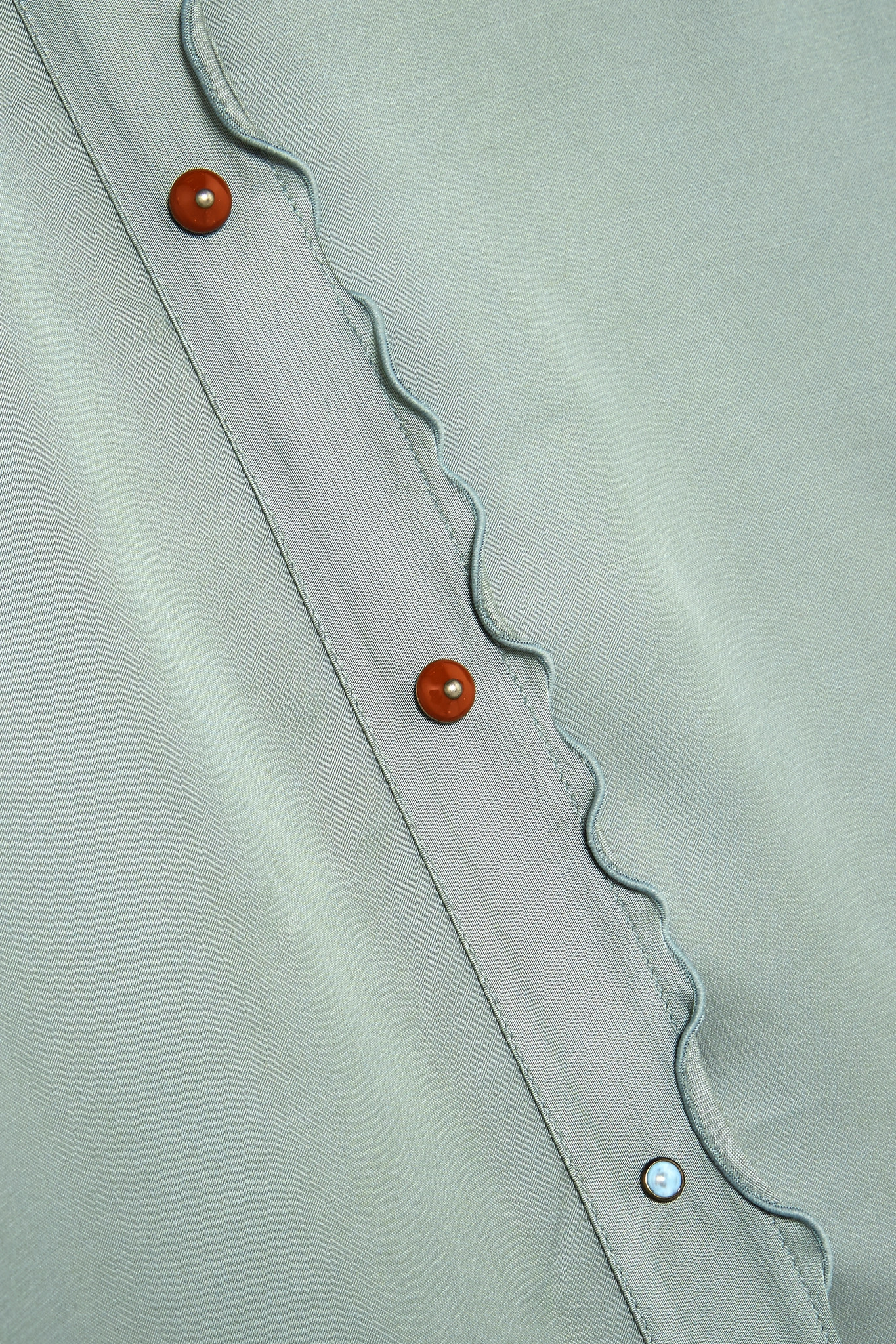 А здесь пример перевёрнутого, огибает и без косички на ребре среза … прелестная блузка от Acne с необычной обработкой воротника и остального.