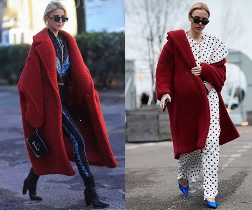 Сеть изобилует картинками владелиц этого пальтишка … разного размера и длины, но не попалось ни одной, где оно застёгнуто (не удивительно – 4 слоя меха на двубортности коварны).