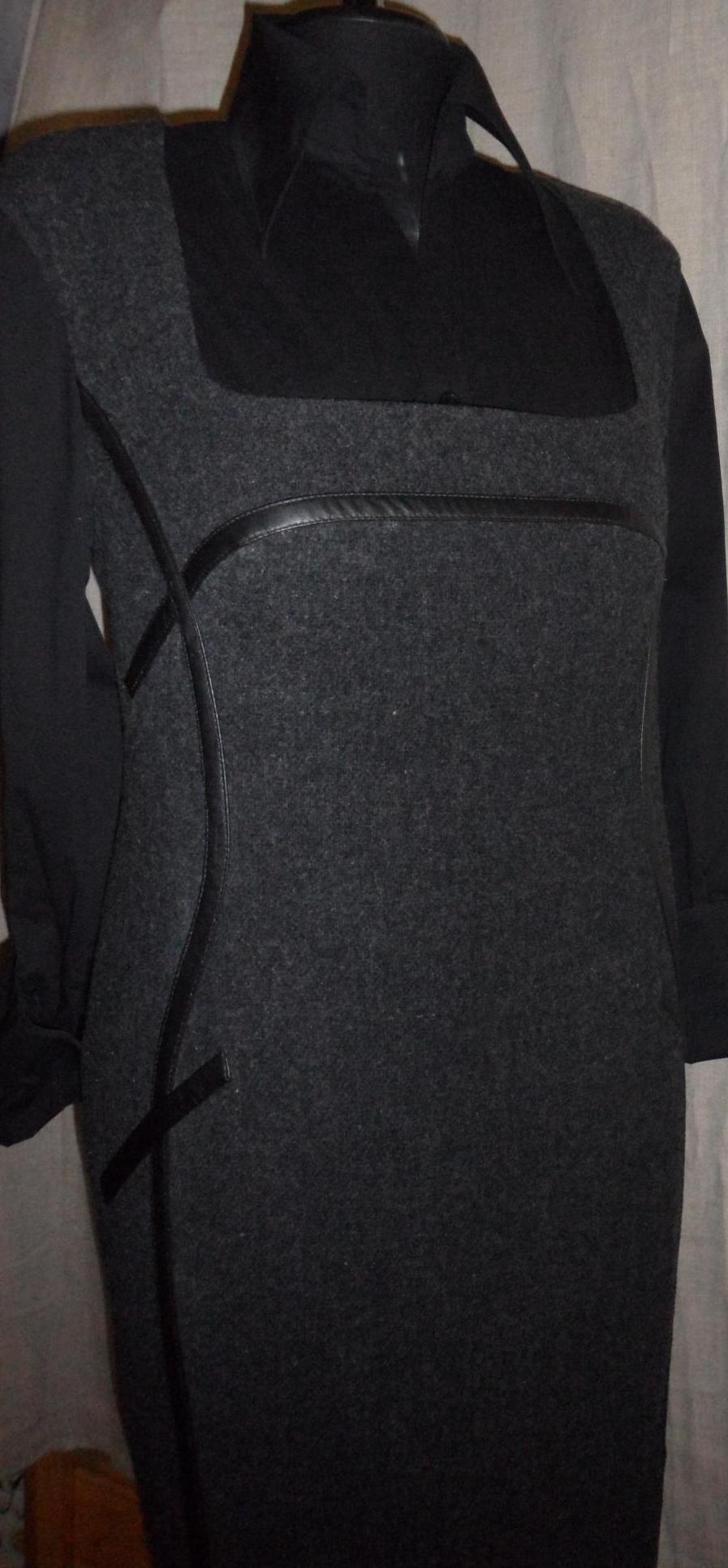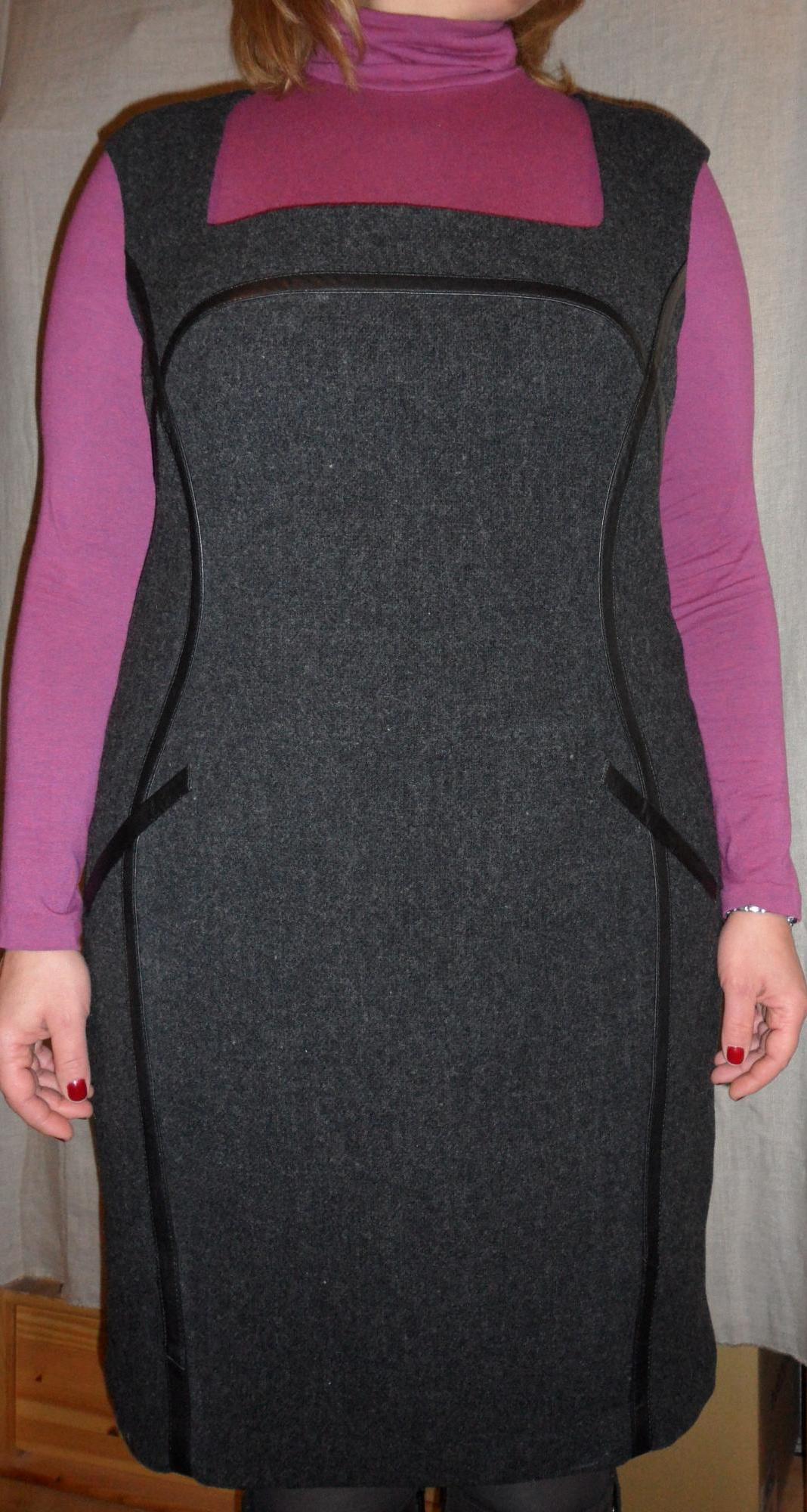 ТВИДОВЫЙ САРАФАН С КОЖАНЫМИ БЕЙКАМИ.