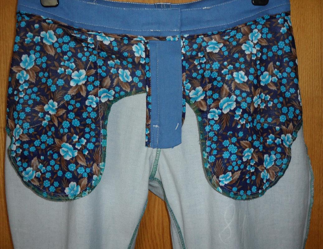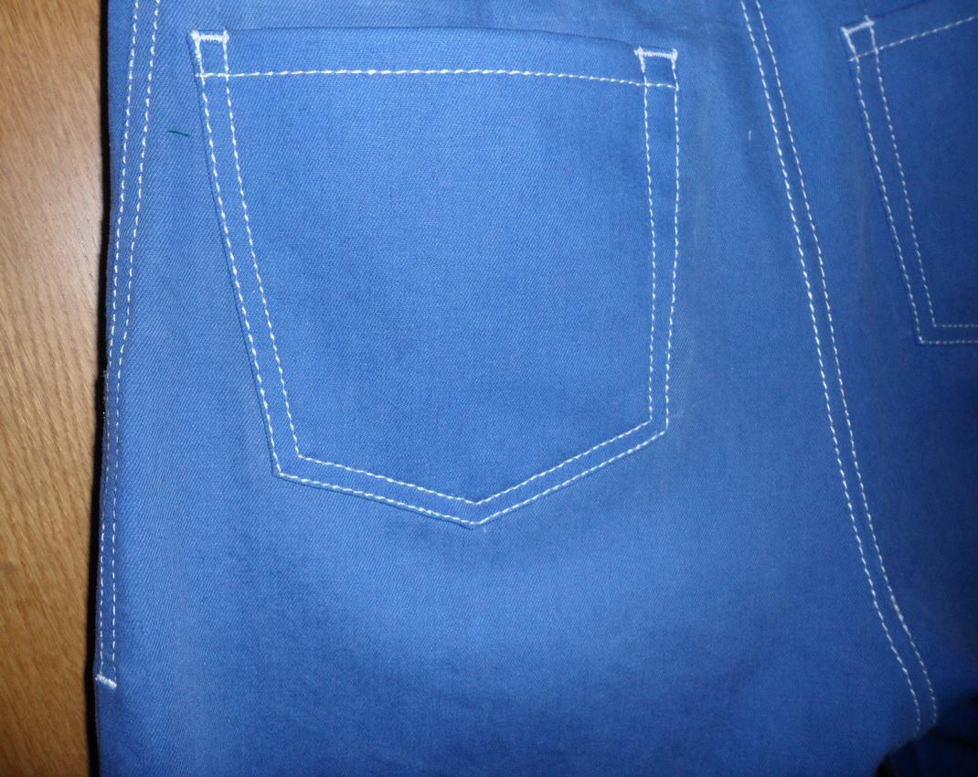 Погулявшие штанишки вернулись ко мне на доработку ... (в синих уменьшила выпуклость галифе, а в голубых задние карманы настрочены гораздо ниже) и украситься ...