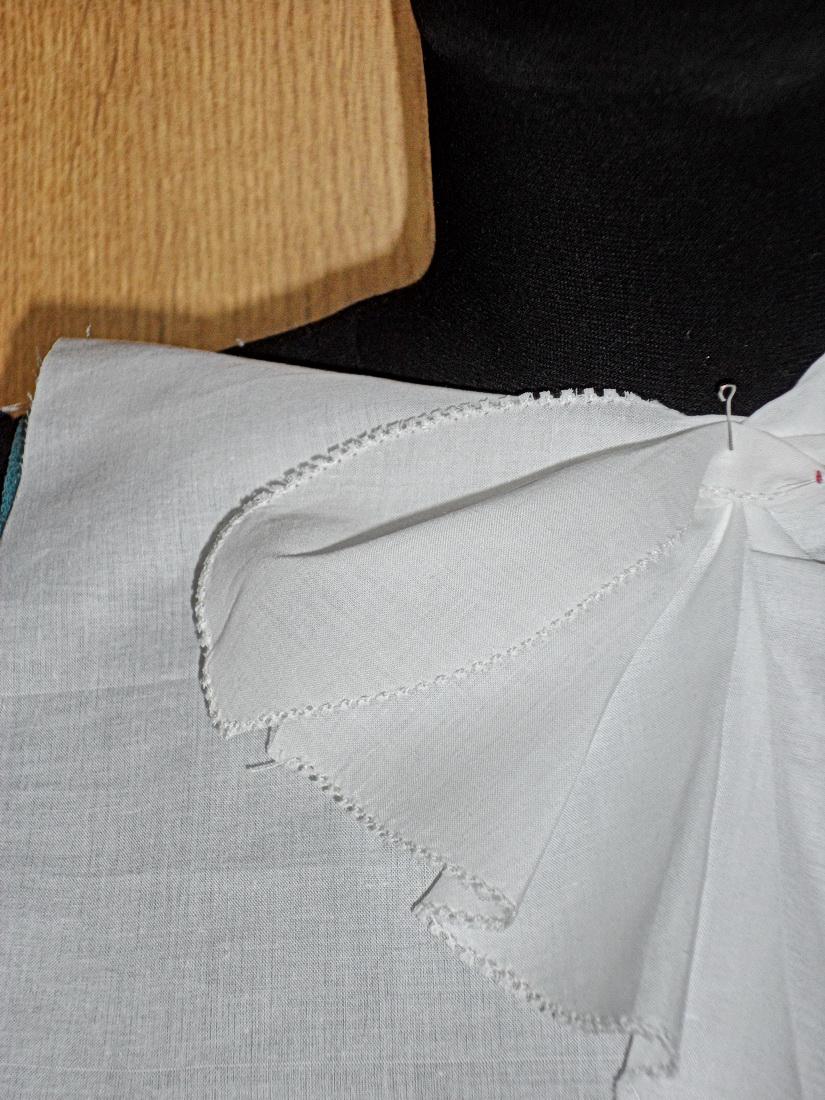 Тоже думаю. что с заметными проколами край выглядит грубовато и "надуманно" ... склоняюсь к тому, что и нитки и игла д. б. тонкими ... вот прикрепила к манекену старые образцы в виде деталей