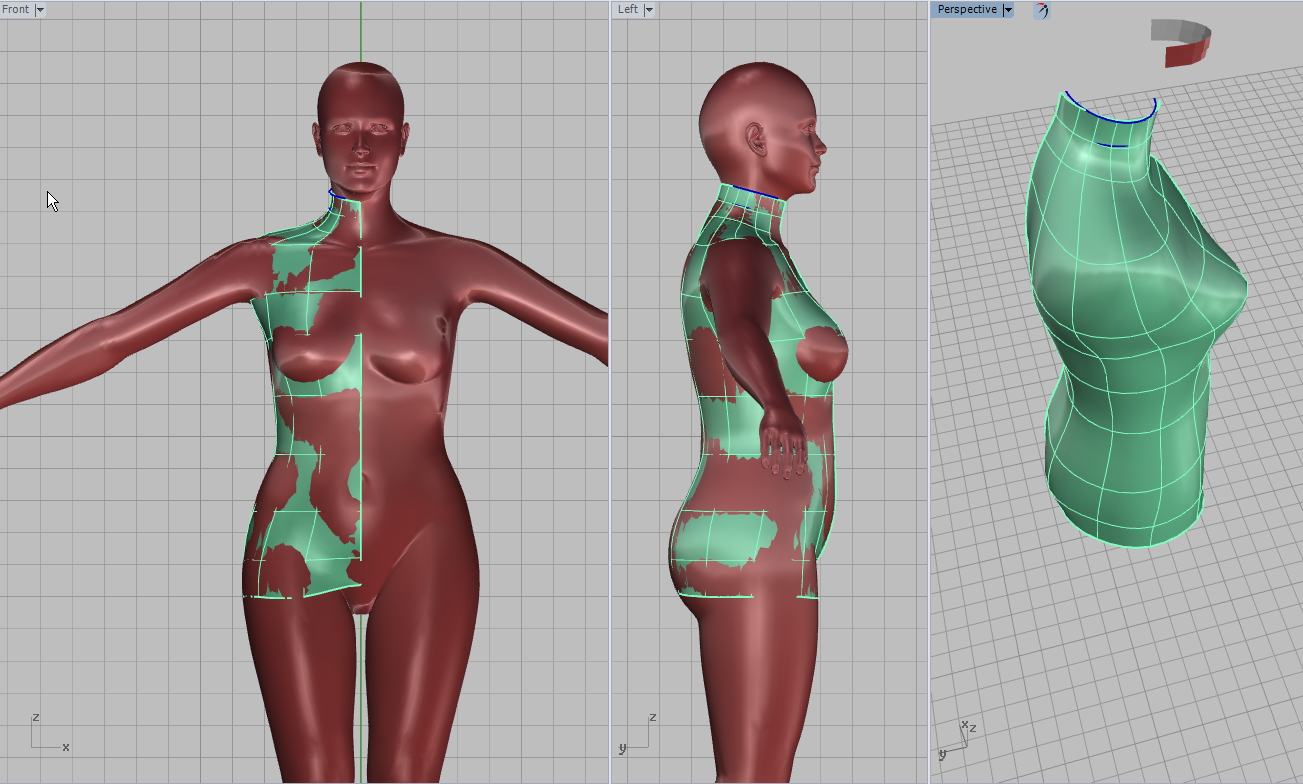 Fly56 Опубликовано 13 января, 2013 Поделиться #275 Опубликовано 13 января, 2013 (изменено) Заинтересовала команда tsSkin.Команда позволяет построить поверхность по имеющемуся каркасу за один раз. Каркас предварительно отредактирован под нужные размеры.Для построения использовала каркас для пальто, построенный по методу Натальи Павловны. Немного подправила, замкнув окружности по линии груди. Серый манекен-T-spline, второй-составной манекенВот мои опыты: Можно попробовать разные настройки для предела допуска. Я выбрала 1.Думаю, что можно затягивать сразу с рукавами. Изменено 13 января, 2013 пользователем Fly56 Ссылка на сообщение Поделиться на другие сайты Поделиться