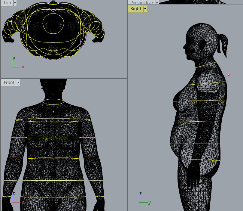 Natamoda Опубликовано 1 октября, 2014 Поделиться #1097 Опубликовано 1 октября, 2014 (изменено) а разве при построении Т-сплайнами не надо перестраивать вертикали?Мало того, я сейчас вообще не использую формообразующих.У меня со временем накопился большой архив т-сплайн манекенов, я подбираю самый близкий по размерам к новой клиентке и подгоняю к фотографиям точками. Чем больше архив, чем больше выбор, тем меньше надо подгонять. Новый манекен тоже попадает в архив базы данных.Если на одну и ту же клиентку несколько манекенов с разной степенью свободы или сглаженности, все эти манекены попадают в базу данных, т.е. размеры у манекена получаются другие и возможно эти размеры подойдут под какие то фотографии другой клиентки.Второй манекен получен на базе первого.А так выглядит база данныхВ таблице размеры манекенов, гиперссылки на файлы. Появляется клиентка, допустим 44 размера. Отсортировываю в базе данных все манекены 44 размера и среди них выбираю самый подходящий по осанке и другим размерам. Загружаю манекен в риновский файл с новыми фотографиями и начинаю трансформировать. Гораздо быстрее, чем строить т-сплайн с нуля, но, естественно, нужен опыт в трансформации, свободно владеть манипулятором.В т-сплайнах линии сбруи даже мешают, потому что изолинии т-сплайна не совпадают с линиями сбруи. Нужно больше следить за формой получающихся горизонтальных сечений.Помогает Ева из Отитекса. Создаю новую фигуру по размерам клиента, насколько возможно подгоняю осанку в том же Оптитексе по таблице данных, за супер точностью не слежу, потому что эта Ева нужна мне для того, чтобы подсмотреть форму сечений.Сравниваю с формой сечения, которая получается на т-сплайновском манекене в тех же местах. Естественно, что анатомические подробности сечений Евы я не повторяю,только опорные участки (выпуклости). Очень помогает!Всё это раньше излагалось в темах, но я применяю с некоторыми нюансами. Изменено 1 октября, 2014 пользователем Natamoda Мой блог 3Д лекала дистанционно Ссылка на сообщение Поделиться на другие сайты Поделиться