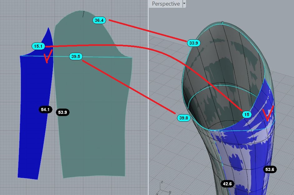 Aliona Опубликовано 31 августа, 2019 Поделиться #1469 Опубликовано 31 августа, 2019 (изменено) Есть такая идея. Создать параметрический каркас рукава-заготовку. С условной(какой- то среднестатистической) линией оката, длиной, обхвата и по бицепсу, локтю и низу.А потом, допустим отработать лиф, развернуть пройму, как выше писала.Потом эту отработанную пройму копировать на отдельный слой и к ней привязывать параметрическую заготовку рукава. В t-splines есть pull,позволяющий привязаться к линии проймы. А в Рино, кажется , подобного инструмента нет? Если бы что-то такое было, можно было бы условный окат параметрического рукава"посадить" на любую пройму Изменено 31 августа, 2019 пользователем Aliona Ссылка на сообщение Поделиться на другие сайты Поделиться