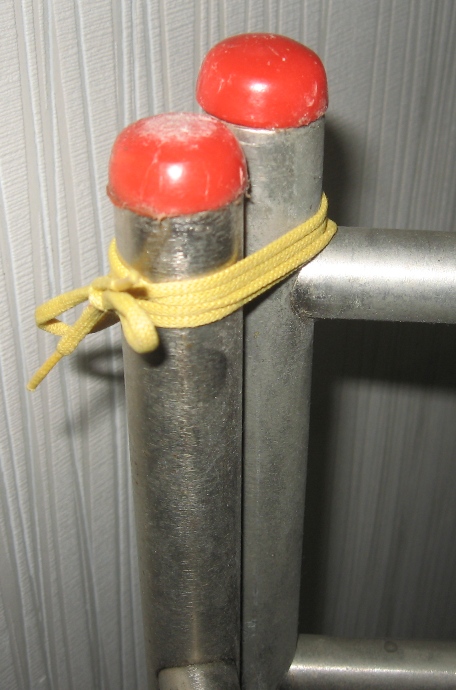 Лестница разборная (с двух равных частей). Чтобы удобнее было её использовать в виде "подпорки" для сканирования и "дополнительного ориентира" я долго не думая просто связал обе части:
