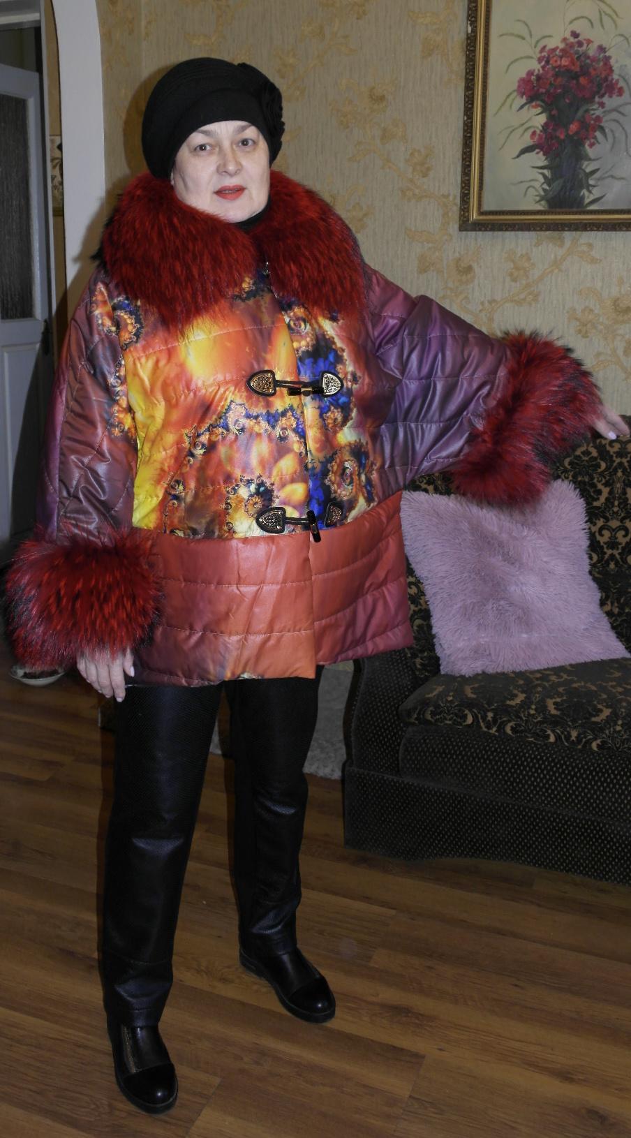 Mariannochka Опубликовано 20 ноября, 2015 Автор Поделиться #603 Опубликовано 20 ноября, 2015 Продолжение стеганной коллекции. Одела всех, но два пальто не запечатлела, забрали прям из под машинки. И так начнем:1. Курточка для подружки – Ирины (ели уговорила сфотографироваться). Её любимый красный. Куртка на подкладке, мех крашенный енот. 2. Пальто для любимой невестки – Галочки. Ткань уже с подкладкой вельбоа. Швы обработаны косой бейкой и расшиты вручную Ссылка на сообщение Поделиться на другие сайты Поделиться