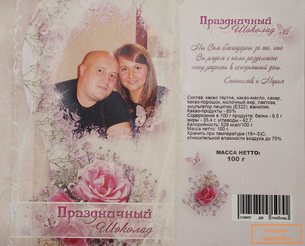 А еще ребята придумали такую фишечку. Каждому гость на память, взамен подарку ,дарили шоколадку ,на обертке которой было их фото.