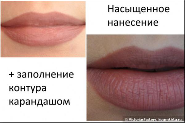 BriNa Опубликовано 26 ноября, 2015 Поделиться #395 Опубликовано 26 ноября, 2015 Повезло, у нас было солнце, получились почти понятные картинки :)Макро нас погубит :) Видно тут, что из стика помада ложится плотно, забирается в складочки ( а на губах эти складочки глубже ), складочки выглядят тёмными, что их и делает видимыми, а цвет более тёмным. Методом "потыкать тюбиком", обзначенным "хлоп-хлоп", в складочки ничего не попадает, общий цвет выглядит светлее и как-бы "припылённым" ( на губах именно так ). Кисть прокрашивает складочки, но за счёт меньшей толщины слоя они не такие тёмные, общий цвет более равномерный. Плюс кистью можно варьировать толщину слоя - я нарисовала эффект деграде. На второй картинке часть накрашенного подрастёрла ватной палочкой - на губах у меня этот трюк получается лучше, чем на руке :), дело привычки и другой рельеф.Теперь про размытие контура, эффект деграде и зачем они нужны.У многих дам верхняя губа в центре наклонена "внутрь", иногда это происходит с возрастом, иногда просто строение такое. Из-за наклона верхняя губа выглядит темнее и глянцевые текстуры ( блески ) тоже способны этот эффект усиливать. Верхняя "галочка" или "лук купидона" в таком случае очерчивают неприятно-резкую линию ( что усугубляет имеющиеся на лице резкости ), а губа смотрится плоской, поджатой внутрь. А хочется и лучше смотрятся "незажатые" губы, которые отражают свет совсем иначе.И тут нам может помочь "хитрое" нанесение помады. Задача: сделать жёсткую линию более плавной и немного сгладить эффект "строгих губ". И вот я это проделала - там где у "исходной" картинки с купидоном на губах естественный блик у моей модели помада нанесена тоньше и весь верхний контур сделан чуть менее чётким - ровно так, как я намалевала кисточкой на своей руке. Бонус ещё в том, что можно забраться чуть-чуть ( на 1 мм ) повыше этой растушёвкой, она никуда не денется - не забьётся, потому что масел из помады уже там почти не остаётся в таком тонком слое.Что ещё бы я сделала - добавила больше цвета в центр нижней губы и м.б. туда капельку блеска, если не лень. Но если помада будет полуглянцевая, то он там сам будет. Теперь про линию, которая называется "вермильон", подписано на картинке с купидоном. Некоторым идёт её сделать относительно чёткой и затемнить ( или нарисовать под ней светлую, профприём, который в жизни нормальным людям нужен раз в год на праздник ), некоторым не идёт - пробуйте. Но в теории более читаемый вермильон это "увеличение объёма нижней губы".Вот на моей даме пример.Такие приёмы работают в основном с пигментом помады, а не её текстурой, т.е. помады светлые, глянцевые, блески - всё это для других техник. Как проверить: взять кисть и попробовать :) _ Sine ira et studia _ Ссылка на сообщение Поделиться на другие сайты Поделиться