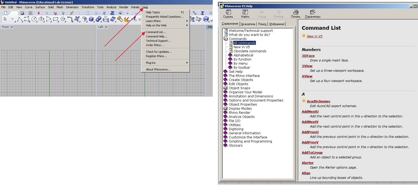 ollya Опубликовано 21 октября, 2013 Поделиться #147 Опубликовано 21 октября, 2013 А справка для Рино 5 есть на русском языке. Или можно из 4 поставить. В 5 так все спрятано, что не нашла, где находится справка.Цветы, в пятерке есть все:) Варианты1)если что-то потеряли и не знаем, где оно-В командной строке набираем первую букву команды ( в английской раскладке)Из выпадающего списка выбираем нужное 2) если примерно знаем, где искать- в меню Help ( у кого русский, вероятно- помощь)выбираем Command list - открывается справка- независимая, которую мы можем просто читать, она не будет привязана к выполняемым командамвыбираем command help - открывается контекстная справкаэта справка всегда будет открываться на той команде которая выполняется в данный моментЕсли мы раскроем список- Где я могу найти данную команду- увидим , где расположены кнопки для вызова этой команды или пункты меню****************русифицированная справка- по ссылке из этого сообщения http://club.season.ru/index.php?s=&sho...st&p=635329как русифицировать- http://club.season.ru/index.php?s=&sho...st&p=636262 пол русификации пятерки- 2 последних абзаца в этом сообщении Ссылка на сообщение Поделиться на другие сайты Поделиться