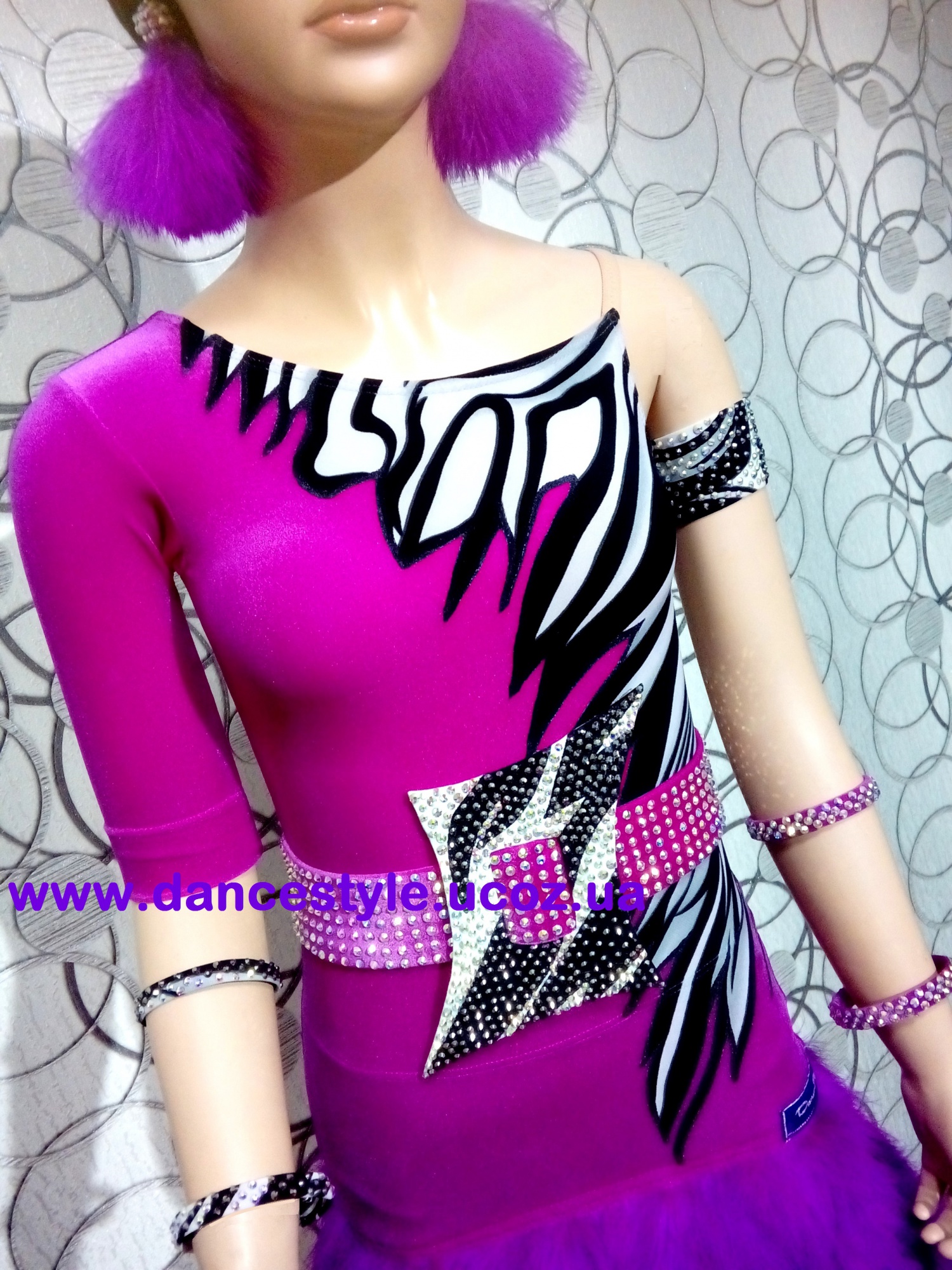 Яркая латина с аппликацией и два комплекта аксессуаров на Юниоры1 и Юниоры2 сшита все в тот же любимый клуб в Смоленской области. Очень уж понравилась первая латина, сшитая в г. Керчь год назад, но остатков трикотажа для высокой и стройной девушки оказалось не достаточно, решили скомбинировать. Причудливо легли линии рисунка трикотажа и, конечно, я немного их доработала. (По секрету... у меня остался еще один похожий лоскут. Почему похожий- потому, что линии рисунка там немного другие). На пряжку никак не подбирался рисунок из остатков трикотажа, и его пришлось пофантазировать и создать аппликацией.