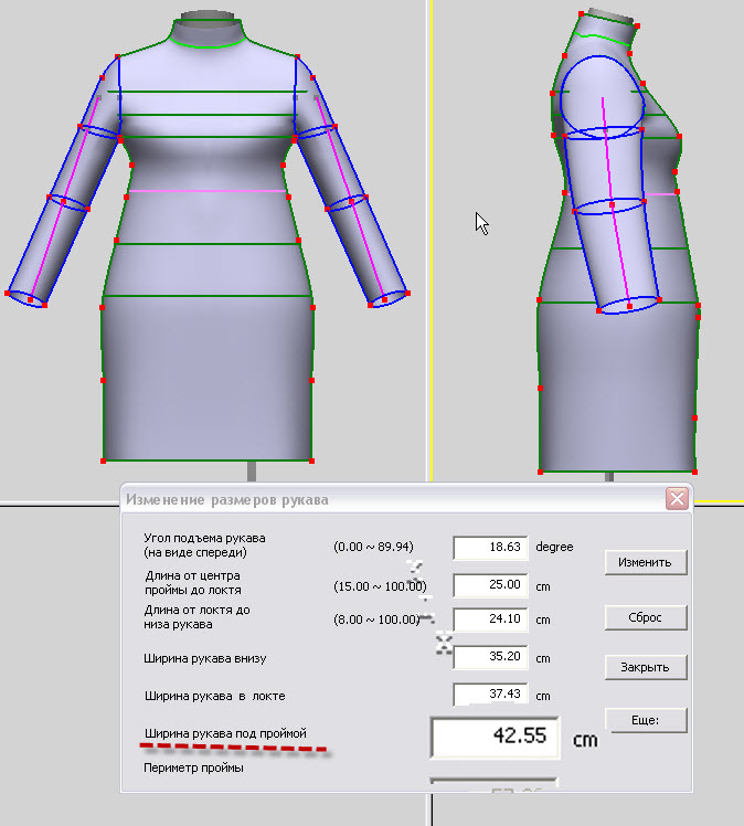 Кадрен Опубликовано 5 октября, 2013 Автор Поделиться #41 Опубликовано 5 октября, 2013 Все таки я бы поднимала пройму.При той ширине проймы, которая у Сарты, можно пройму не поднимать. Она почти круглая. Иначе будут заломы в углах проймы. Но ширина действительно странно велика. Еще смущает столь большая разница с шириной первого рукава.При изменении угла увеличивается ширина рукава. Ширину рукава можно регулировать в диалоговом окне.Не нужно стремиться, чтобы рукав был эстетически красивый или куглый, как труба. Лучше контролировать размеры. Сарта, когда я говорила о касательной, я имела в виду ваш отвесный рукав. Вы поменяли угол, значит нужно посмотреть, что может еще измениться. Встаньте перед зеркалом в пальто и попробуйте прижать руку к телу, затем приподнять, посмотрите, как будет меняться рисунок плечевой части рукава. При отвесном рукаве это место сплющивается. Поднимите руку и передняя линия немного натягивается. Изобразите это поведение в Луке. В любом случае, переход от углов проймы к локтю должен быть плавным. Нельзя объять необъятное, но до чего же хочется.мой сайт. Тренинги по 3д конструированию Ссылка на сообщение Поделиться на другие сайты Поделиться