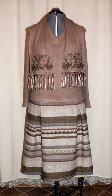 VauVau Опубликовано 4 декабря, 2014 Автор Поделиться #910 Опубликовано 4 декабря, 2014 Вот и хорошо, что всем стало весело! ( А то я уж очень опасаюсь, что слишком много пишу, чем могу наскучить)Всем гостям спасибо!Теперь ЮБКАИзначально была идея соорудить стеганную юбочку, в магазне на глаза попался этот твид с какими-то северными мотивами и уж больно подходящий по цветовому решению, и стеганая юбочка отложилась на потом.В составе твида 80% шерсти, шириной 150см. Вот только он имеет горизонтально выраженные полосы, что при моем росте не есть хорошо.Поэтому отсюда и простой фасон юбки с мягкими складочками, вертикально фалдящими.Юбка на кокетке, на спине с вытачками, что позволило состыковать рисунок с нижней частью юбки. Поставила юбочную молнию, т.к. сама юбка достаточно массивная.Опробовала Жени-Строчки подбой. Спасибо, Женя, мне понравилось!Кантик на подкладке с небольшим валанчиком решили проблему нехватки подкладки, которая тоже была вытащена из закромов.Лицевая часть кокетки продублирована, верхний край последней укреплен бязевым долевиком. Ссылка на сообщение Поделиться на другие сайты Поделиться