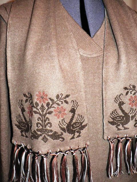 VauVau Опубликовано 6 декабря, 2014 Автор Поделиться #918 Опубликовано 6 декабря, 2014 Jullisa, Elenko, Ise cream!, большущее спасибо за ваши отзывы! Ойойой!!!!!!Как все красивоооо! И как все прям хочется захомячить и на себя нацепить!Да, на нашем форуме бездна идей и всяческих красивостей. И книги наших хотелок становятся толще и толще. Лично я всегда жалею только об одном, что за всеми не успеваю, а так хочется. Всем желаю воплотить все свои мечты! Красоты не бывает много!Глядя на Ваши труды, хочется выдохнуть "Ещё!..."Как только прочитала Ваше "Ещё", сразу в голове что то и щелкнуло, и родился шарфик. А ведь именно его в комплекте как то и не хватало."Жизнь - цепь, а мелочи в ней звенья, нельзя звену не придавать значенья!" Полуверчик, шапулька и шарфулькаПолувер из вязанного трикотажа, мохер с вискозой.Особенно рассказывать нечего. Оверлок и распошивалка. Линии реглана и гороловины укреплены узкой клеевой с нитью.Шапочка -мой первый пробный опыт. Результатом которого я очень довольна.Плащевка на головке и нижняя часть отворота продублированы, подкладка простегана с синтепоном, низ шапочки укреплен киперной лентой.Драпировку на отвороте делала макетированием.ШарфикВы на него только посмотрите, он как- будто там и был всегда!Прямо какая то сказка. "Молодой Полувер влюбился в красавицу Юбочку, и она его тоже полюбила.И у них родился миленький такой сыночик Шарфик, которому передались все лучшие гены от папы и мамы."В общем даже не хочу свою Жанну раздевать, а смотрю на нее и любуюсь, и больше всего шарфиком.Сделан из остатков трикотажа от полувера, двух слойный.Машинная вышивка крестиком, нитки шерстяные Madera, из них же и кисти.А чего тут рассказывать, лучше полюбуйтесь сами Ссылка на сообщение Поделиться на другие сайты Поделиться