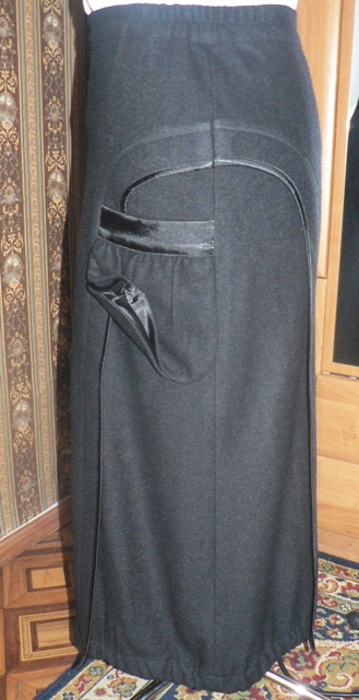 VauVau Опубликовано 2 августа, 2013 Автор Поделиться #185 Опубликовано 2 августа, 2013 Ну, и вот эта юбка, которую запросто можно было и сшить, и ткань была бы более благородная.Левый бок юбки с подкройным слегка расширенным бочком, по линии притачивания бочка подкройная отделочная планка, обработанная косой бейкой.Очаровательный объемный отлетный карманчик, низ юбки по подгибу собран на широкую резинку: Со спины отчетлива видна асимметрия юбки:Правый бок только с небольшой верхней частью левого бочка, а ниже конусная вставка с поперечными складами: Понятно, что моделируется такая юбка очень просто, а выглядит очень и очень интересно. Так что лучше сшить! Ссылка на сообщение Поделиться на другие сайты Поделиться