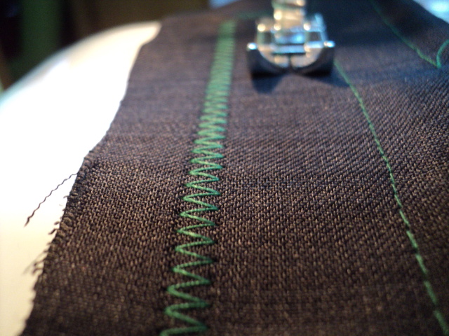 на полосе кожезаменителя строчки Хускварны - зелёная нить