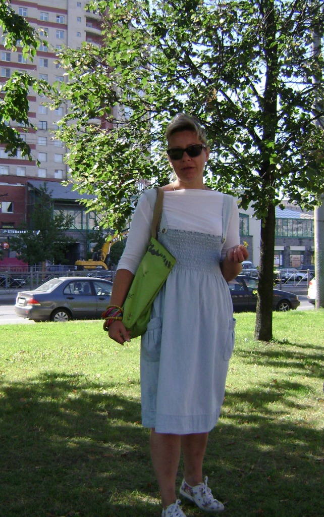 гюго Опубликовано 28 августа, 2013 Автор Поделиться #447 Опубликовано 28 августа, 2013 Здравствуйте! Случайно, а вернее по срочной необходимости, сложился такой вот прикид. - Нужно было что-то придумать с кедами, помимо джинсов. Вот, смотрю и не могу понять - стоит мне такое носить или нет - ? Имею в виду кеды (тенниски) с юбкой, или с юбкой такого силуэта. Что-то в этом есть малость от бохо, что ли...верх - нравится, низ - тяжеловат?.... Мое или не мое? По секрету: это беременный сарафан на 2 размера больше Голову что ли отрезать на первой фотке, нету у меня стольких подбородков...)) Ссылка на сообщение Поделиться на другие сайты Поделиться
