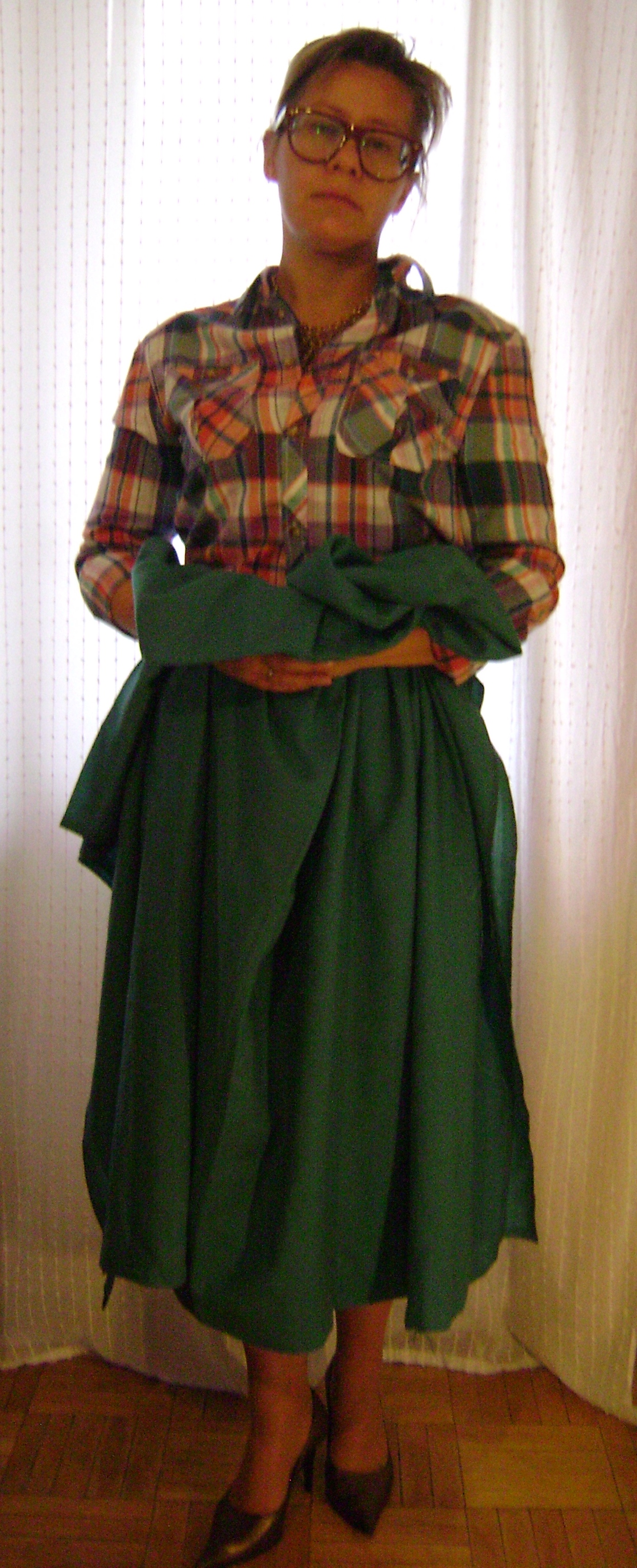 гюго Опубликовано 8 октября, 2013 Автор Поделиться #531 Опубликовано 8 октября, 2013 Вот люблю я, когда здесь у нас так жизнь кипит:) Пошло дело. Я принесла с пылу с жару результаты лабораторного эксперимента.Сейчас фотки обработаю и выложу. Оставайтесь с нами. Итак, клетчатая рубашка ... 1. С юбкой - миди, черной, офисной 2. Как это бы выглядело,если бы она была бирюзовой (на фото- не юбка, а приложенная ткань) увы, ни одного "честного" оттенка не получилось(((( Самый близкий - на самой светлой фотке - и юбка и рубашка, но в жизни, чуток все же поярче. 3. Фантазии на тему НЛ-юбки из той же бирюзовой ткани ( кажется шерстяной креп это). Везде ворот расстегнут + колье = в принципе -мне понравилось. Издержки представленного варианта :ткань мягковата, воротник форму не держит, и довольно пестро получилось. Мне не привычно. Колье схвачено то, что ближе лежало. Оно не вполне подходит, просто для обозначения. Ссылка на сообщение Поделиться на другие сайты Поделиться