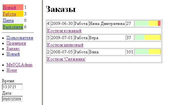 Программа учета - это собственно не программа, а локальный веб-сайт, написанный на PHP и хранящий данные в SQL базе. Все операции выполняются в Интернет эксплорере, заполняю соответствующие формочки на этом сайте и по нажатию кнопочек получаю отчеты, которые можно распечатать. Можно посмотреть общие данные, расчеты по клиенту, по заказу и т.д. Данные на картинках не реальные, а из тестовой базы. Этот сайт писал мой муж в свободное от отдыха время. Конечно, не все доделано, но это как конструктор, который затачиваем "под себя".